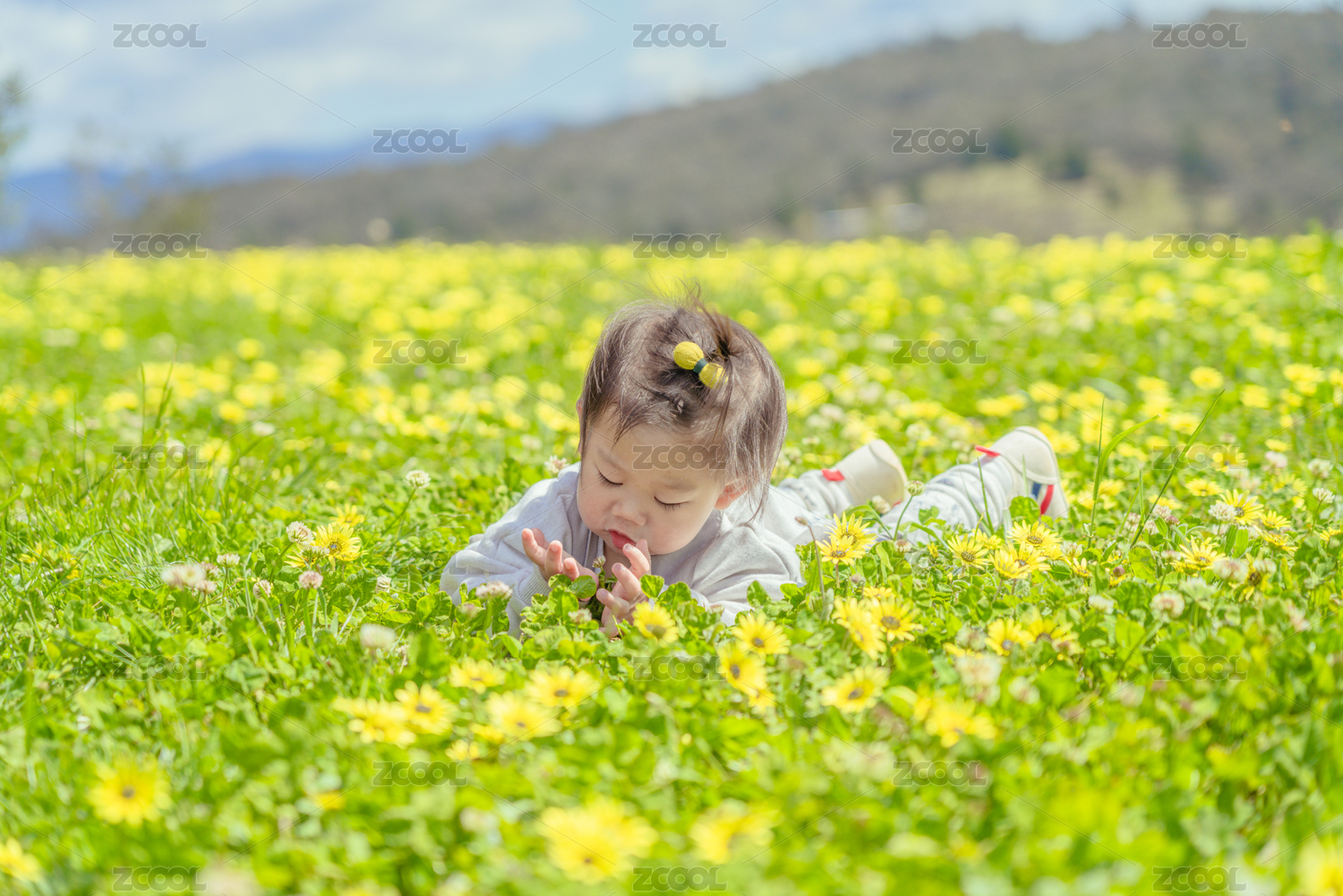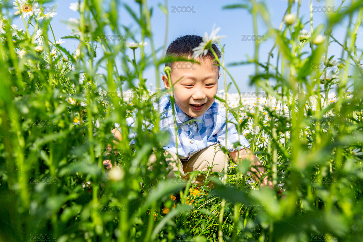 蓝天白云下张北草原天路边吹泡泡的男孩