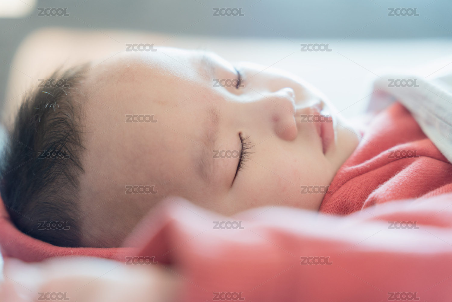 亚裔小男孩在睡觉,母亲在为他盖被子