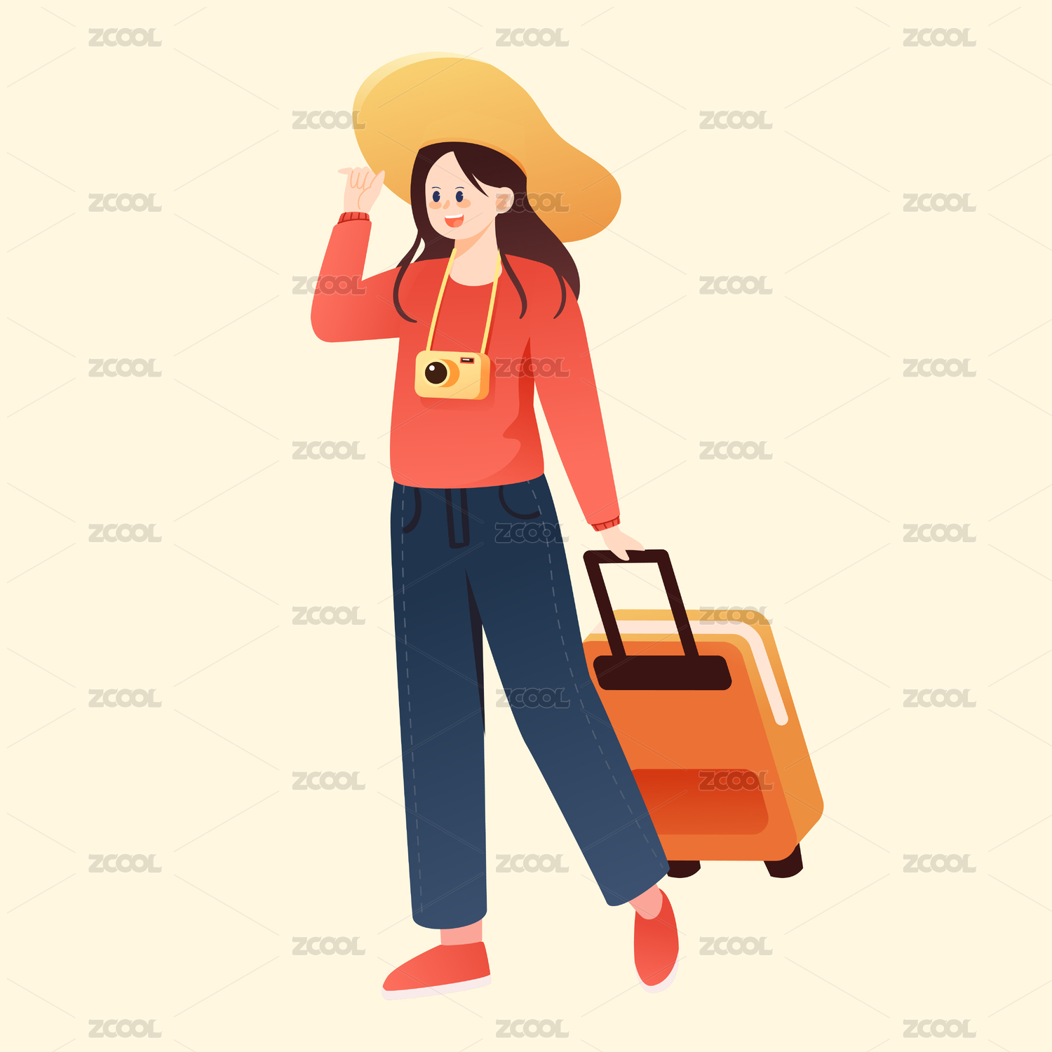 假期旅行插画手拿行李箱的女孩