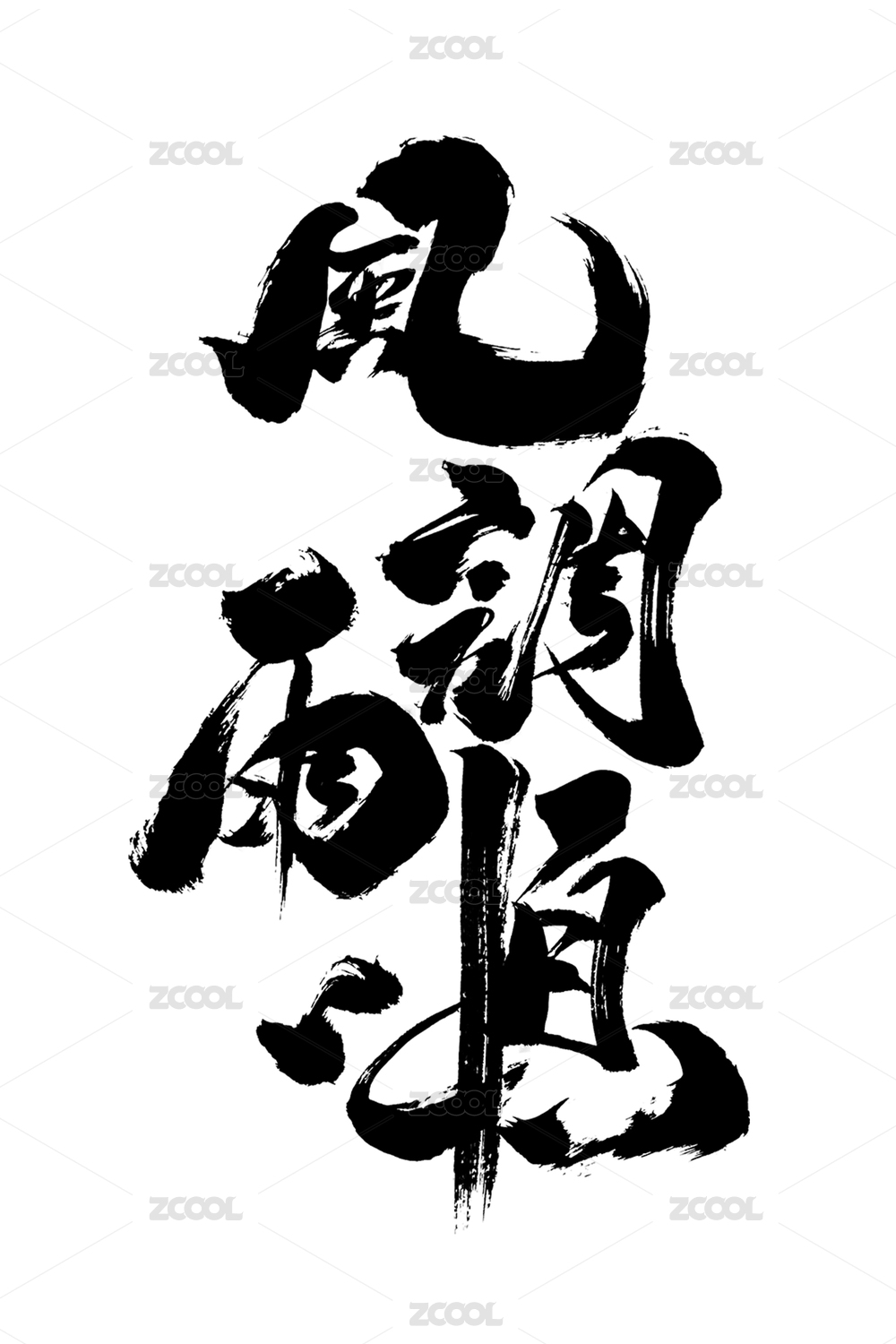纯手写创意书法国潮风格毛笔字风调雨顺
