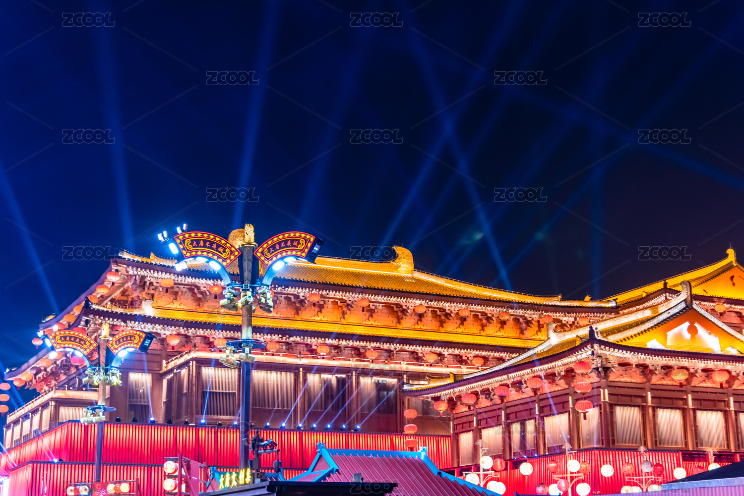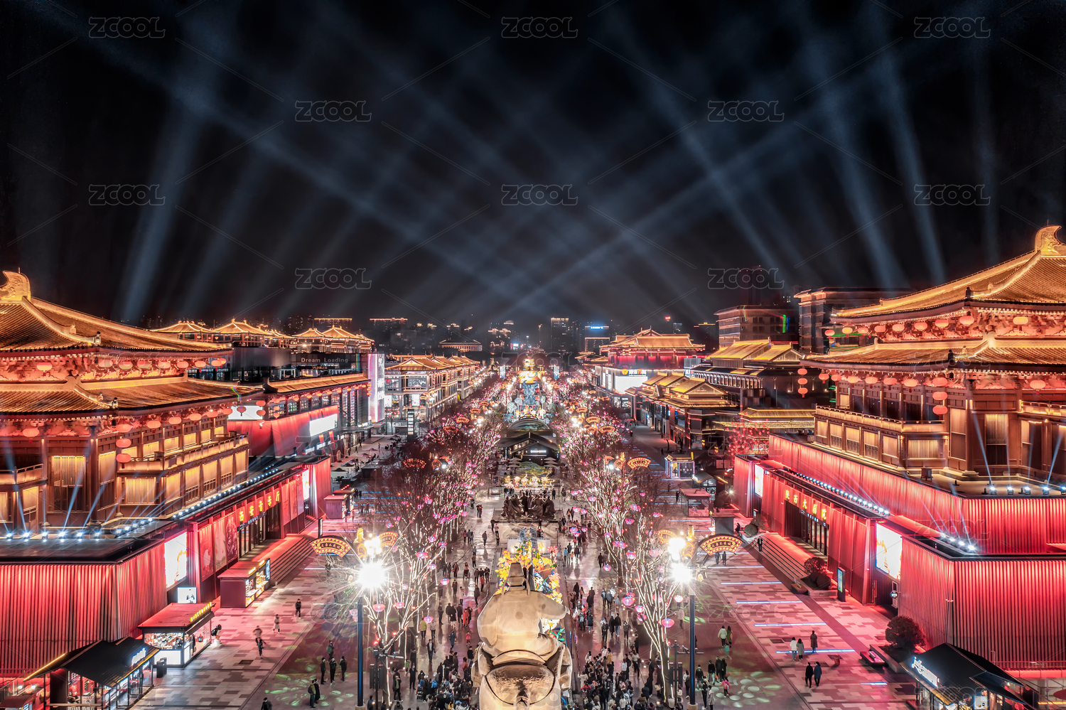 陕西西安大唐不夜城夜景的盛唐光辉