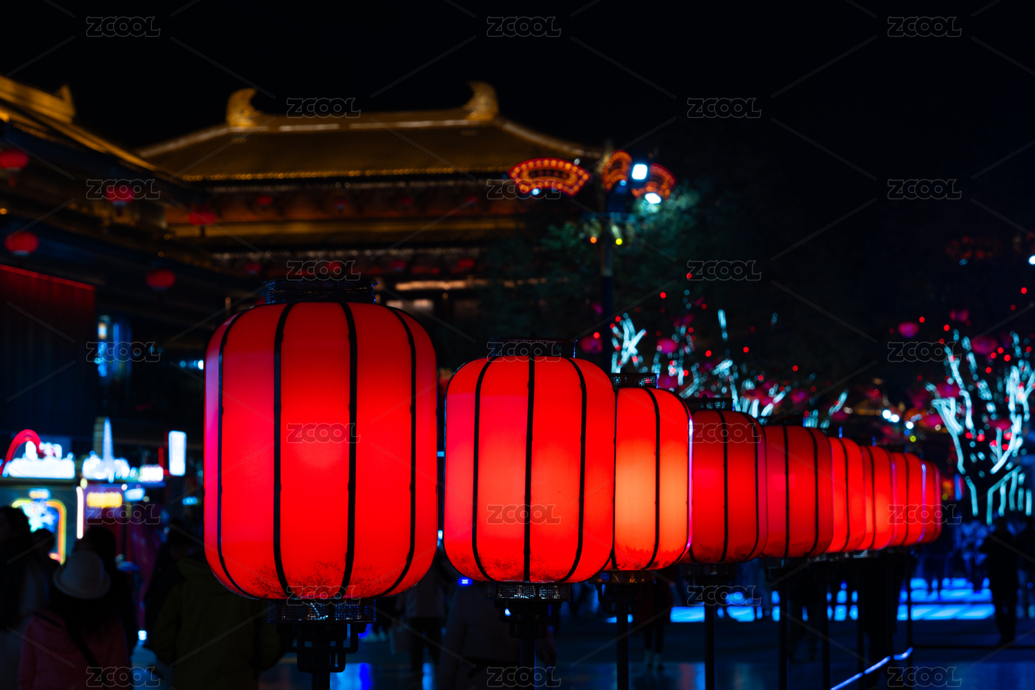 大唐不夜城垂吊的彩灯