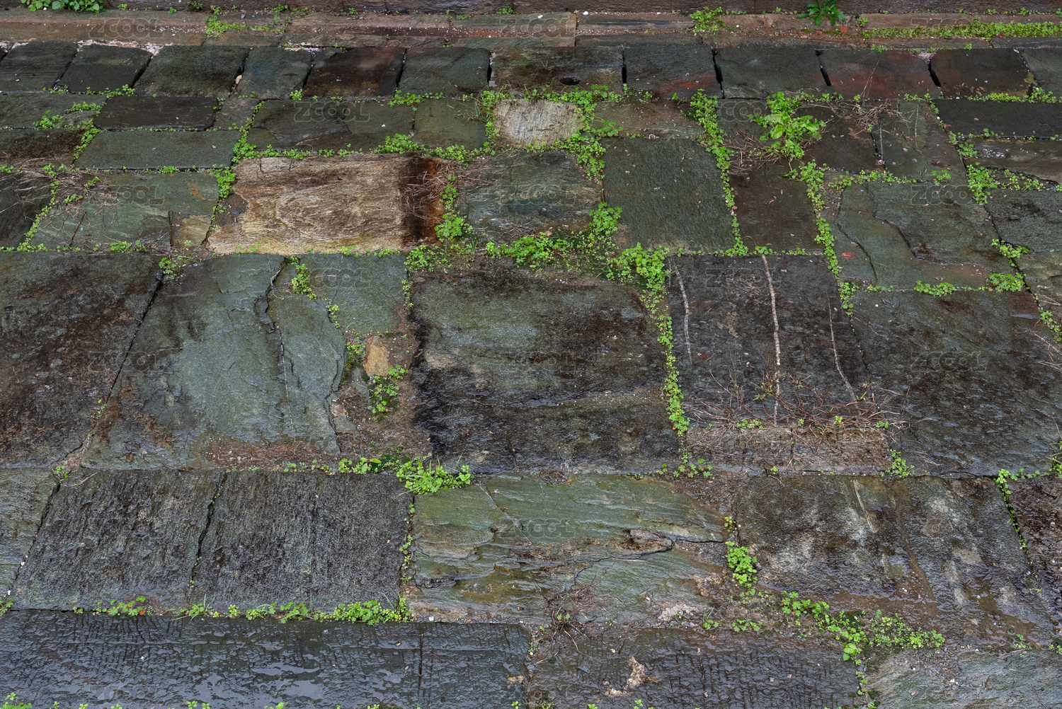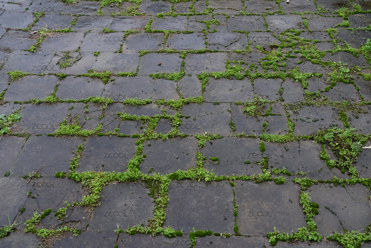 武当山五龙宫历史文物砖铺地面苔藓