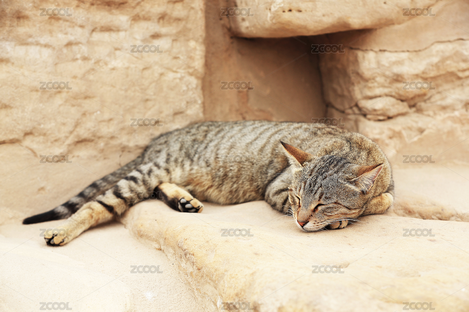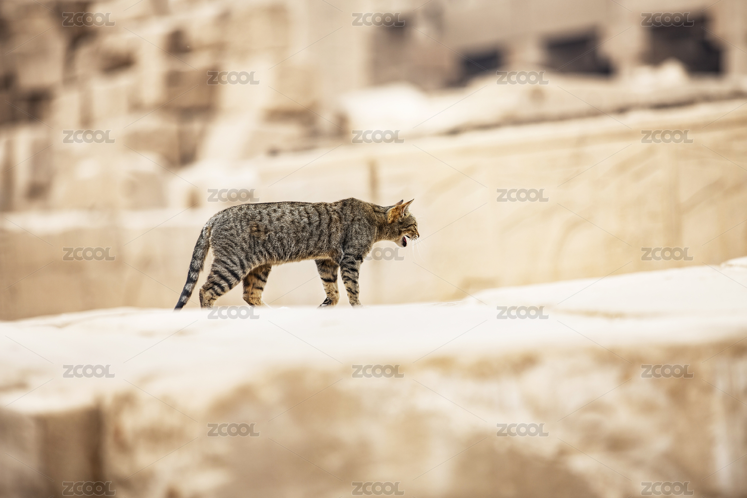 埃及卢克索神庙石头台阶上悠闲自在的猫