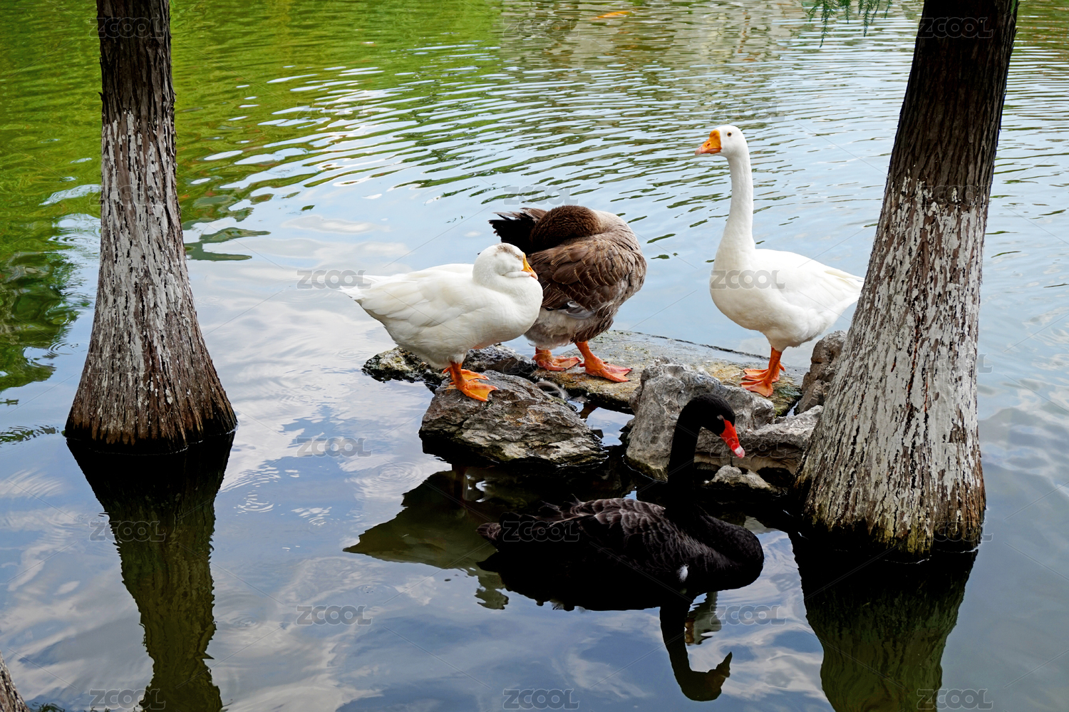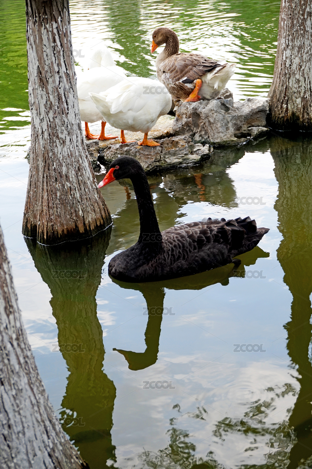 一群天鹅在湖中自由自在地游玩