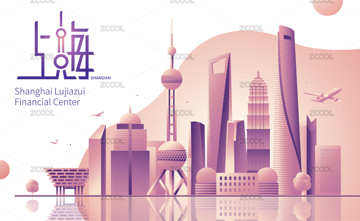 上海城市建筑群天际线矢量插画海报