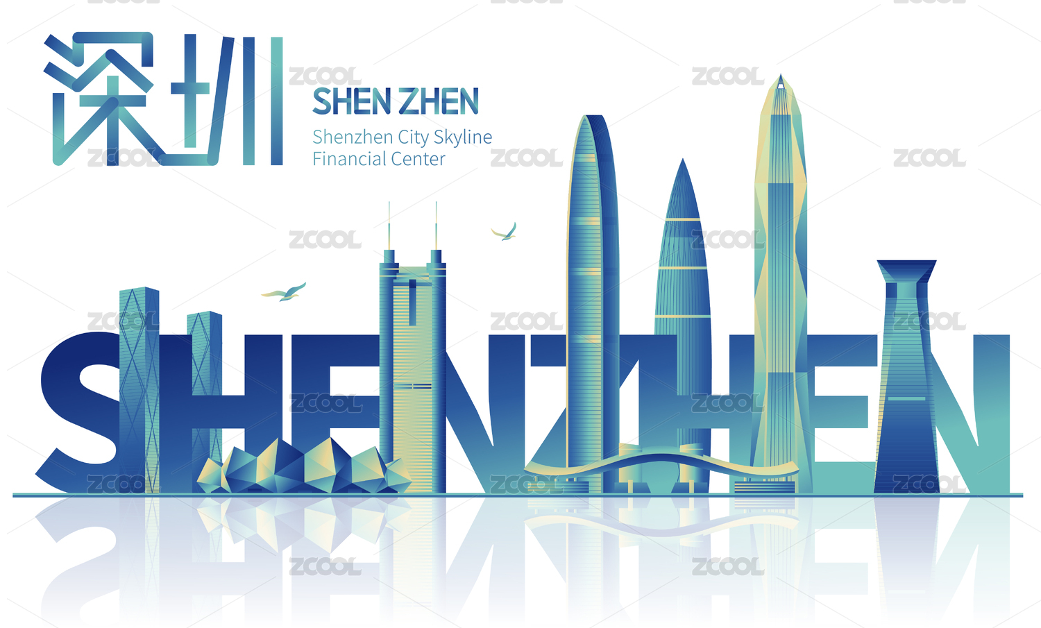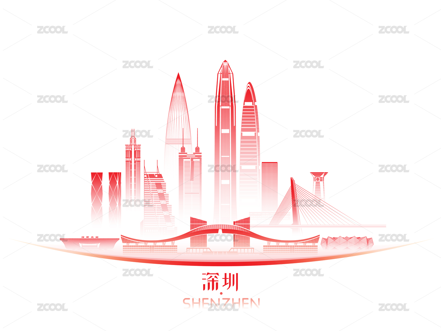 深圳地标天际线城市建筑矢量插画