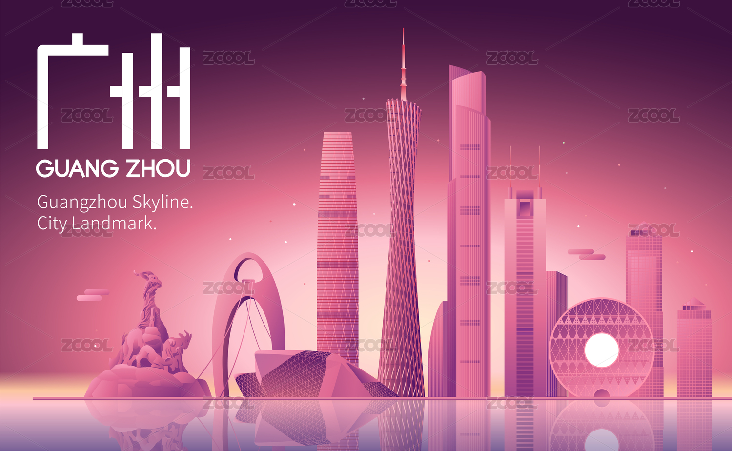 广州城市天际线建筑矢量插画