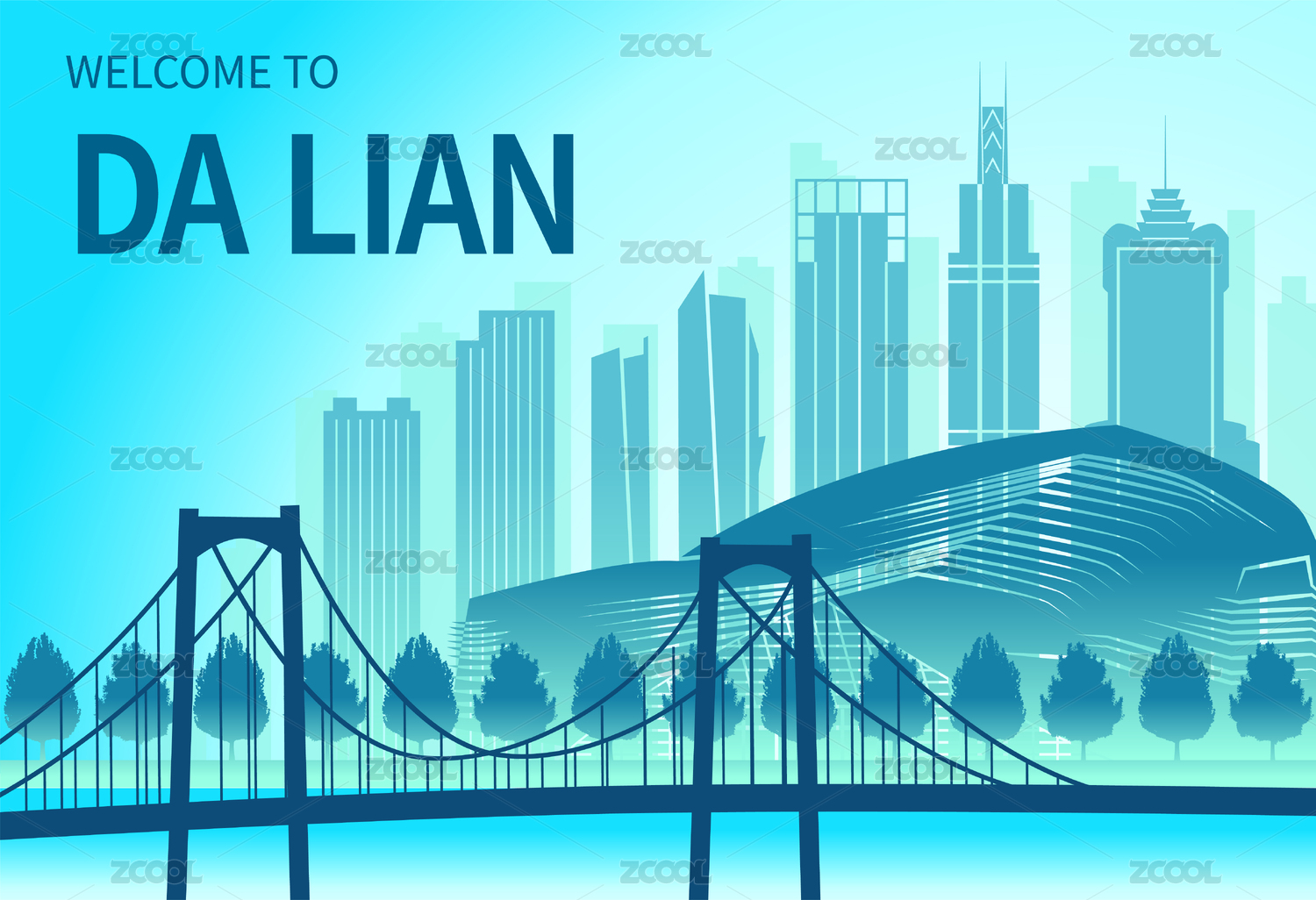 中国辽宁省大连市城市天际线渐变矢量插画