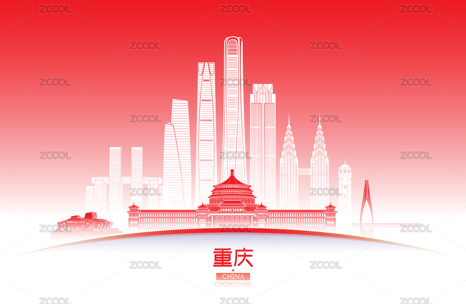 重庆城市建筑群天际线矢量插画海报