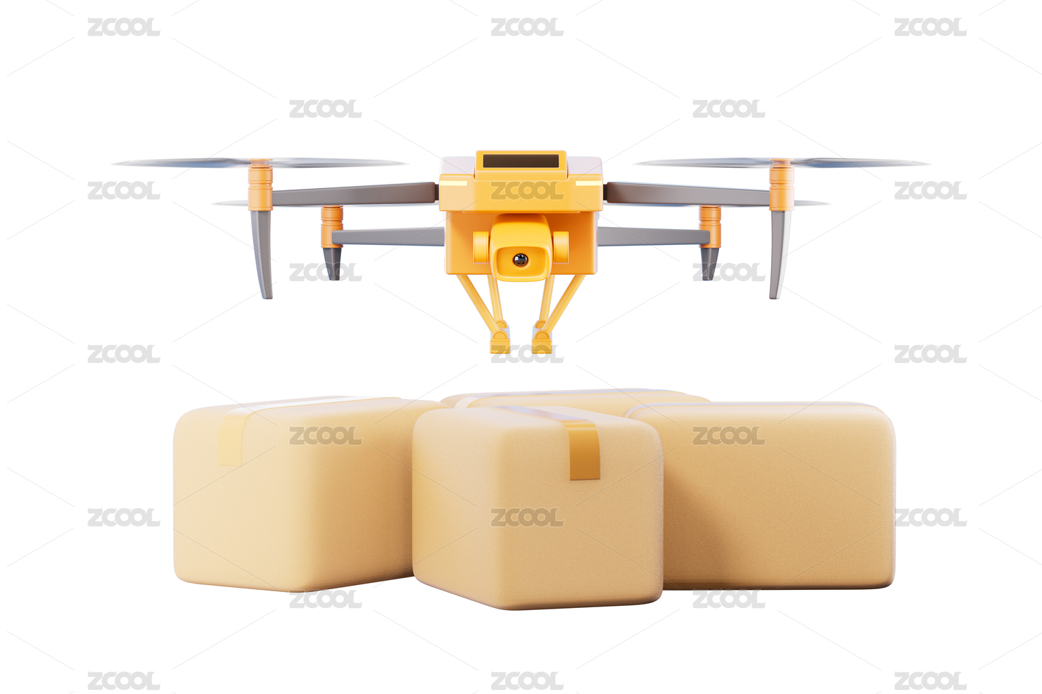 3D渲染的黄色背景下的无人机物流货物运输