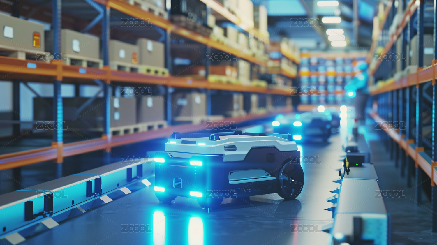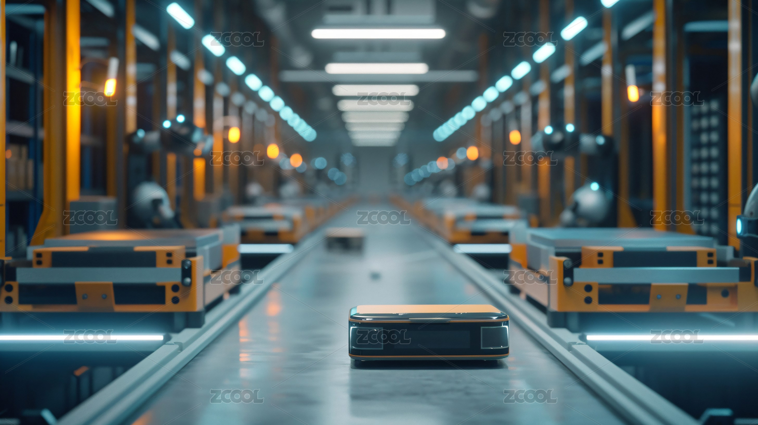 传送带上运输的纸箱3D渲染