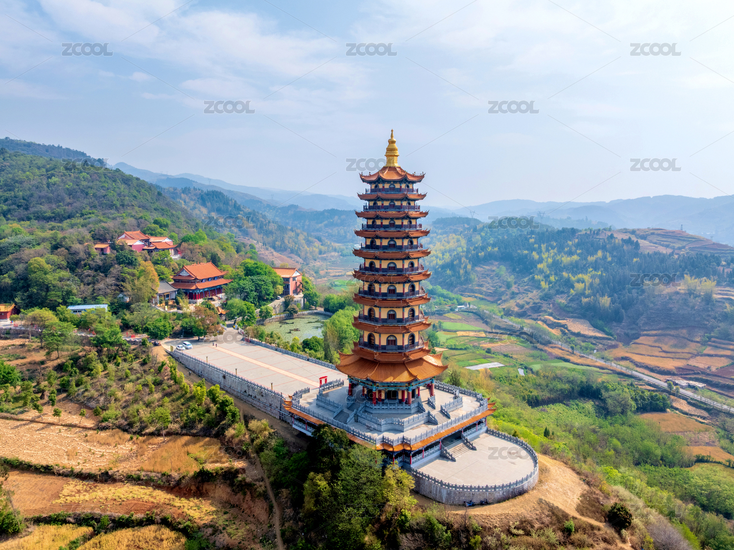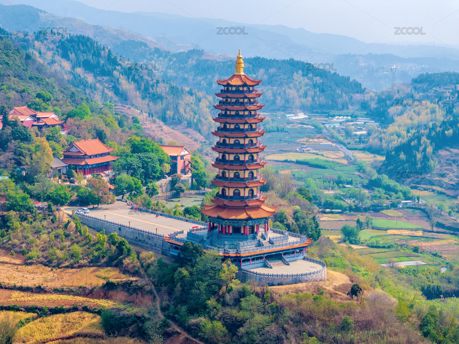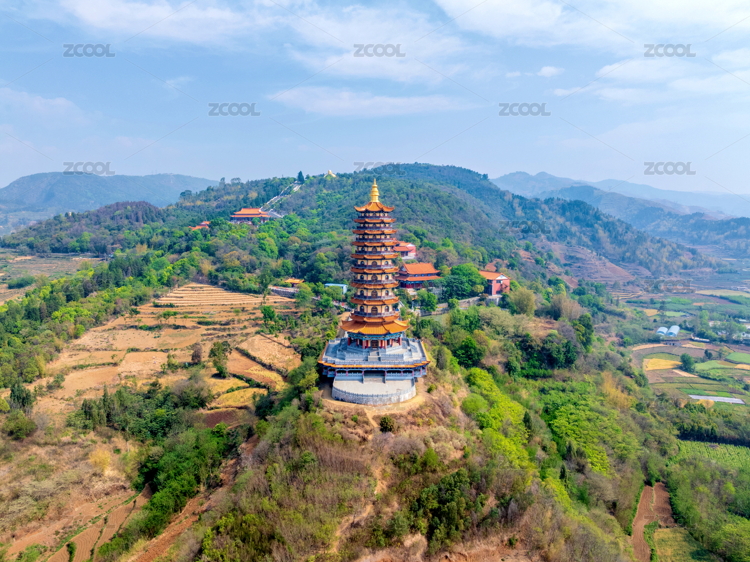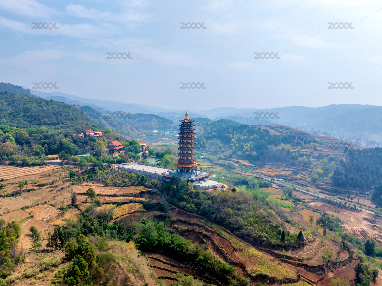 中国云南红河弥勒锦屏山弥勒寺龙华宝塔航拍