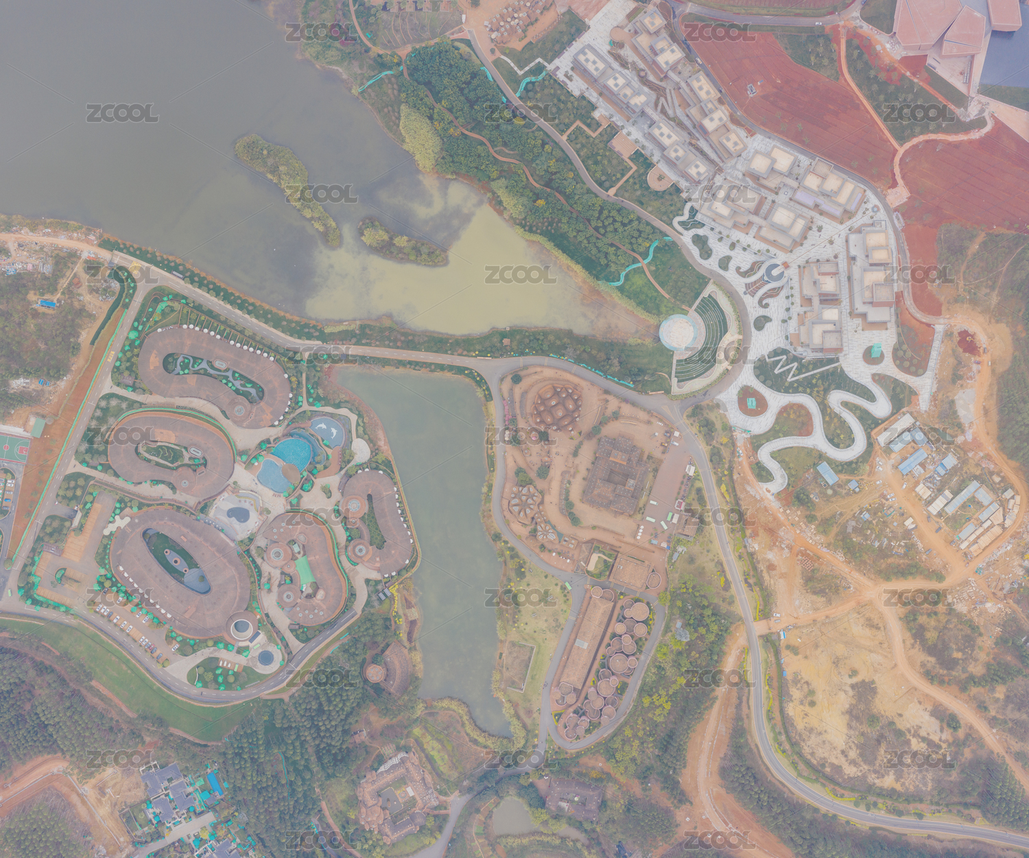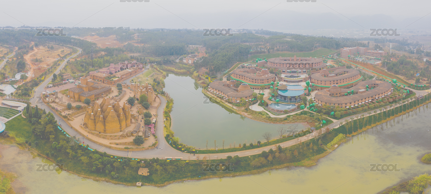 航拍中国云南弥勒东风韵艺术小镇