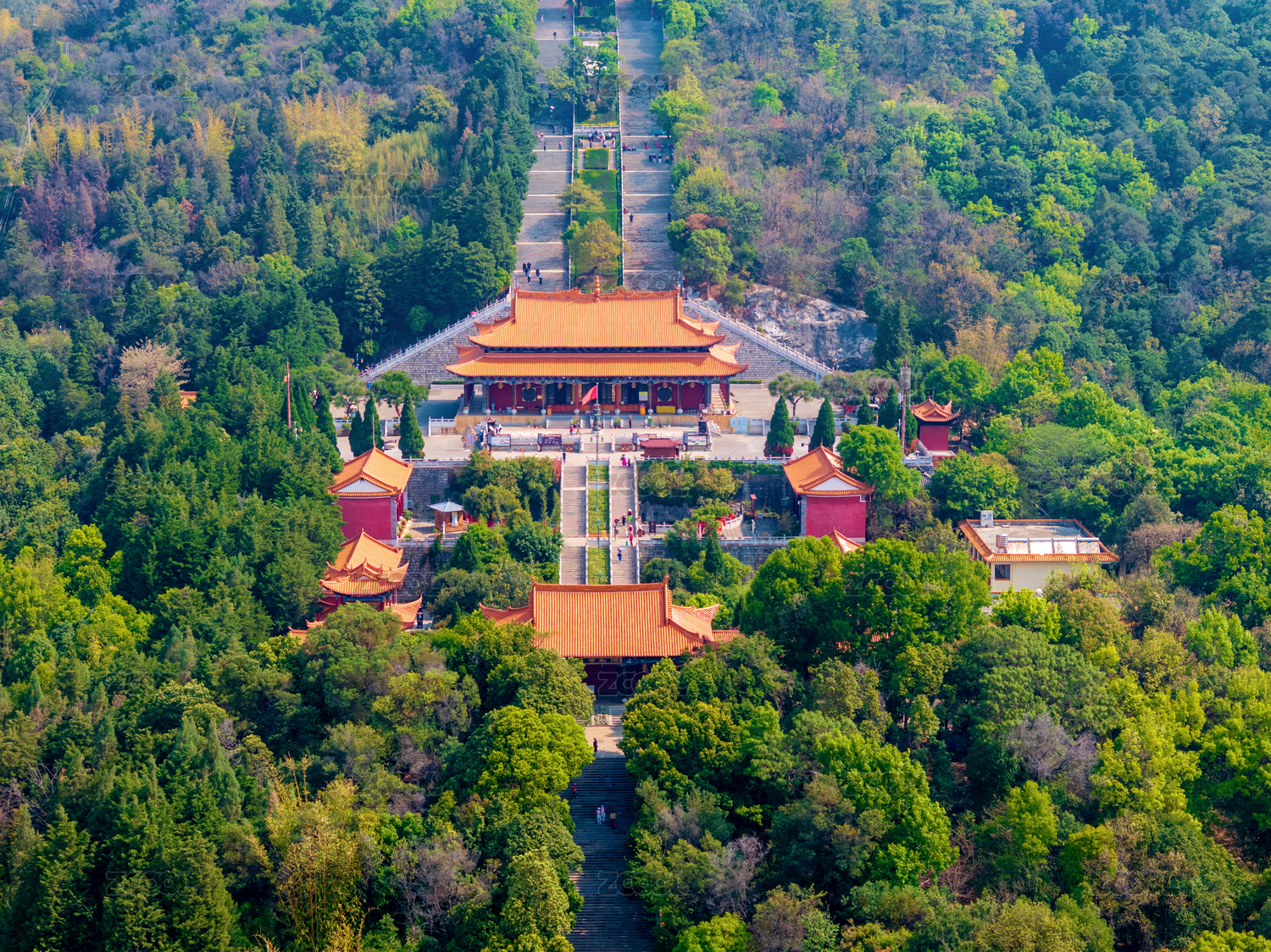 中国云南红河弥勒锦屏山弥勒寺航拍风光