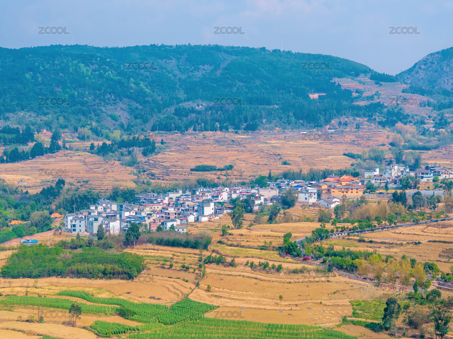 中国云南红河弥勒乡村田园航拍风光