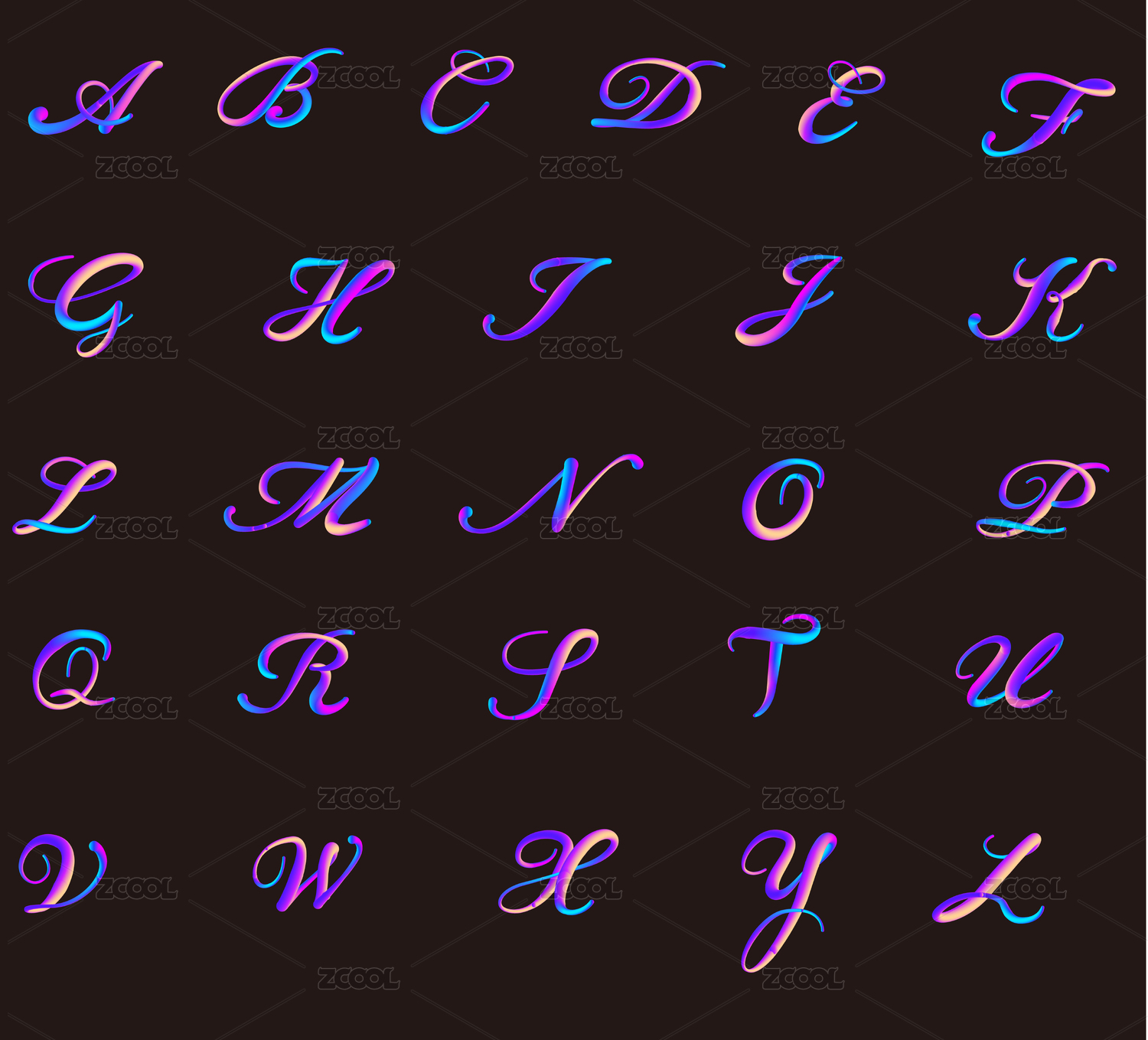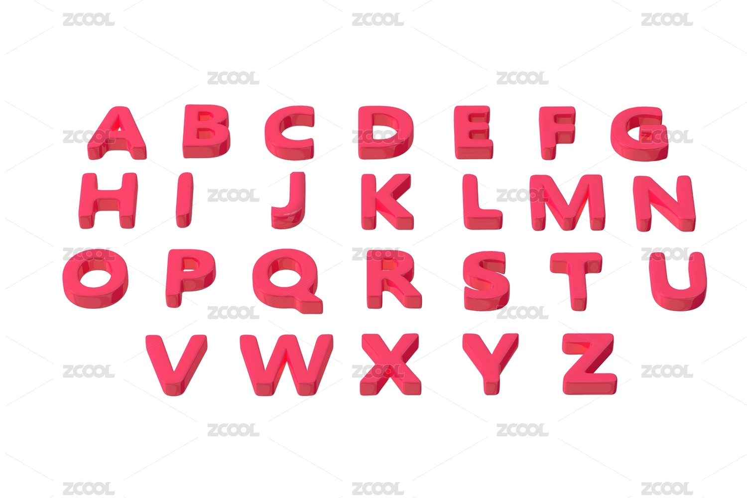 卡通风格的三维立体的英文26个字母字母表,白底抠图素材