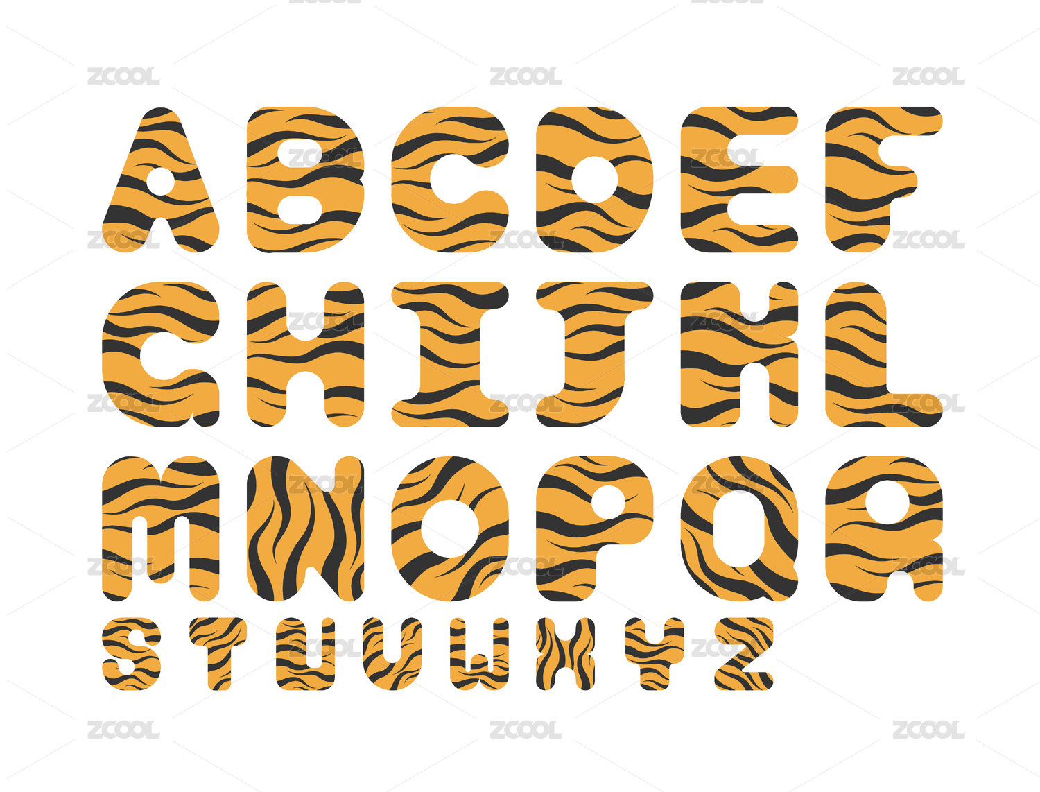 可爱虎纹条纹大写英文字体