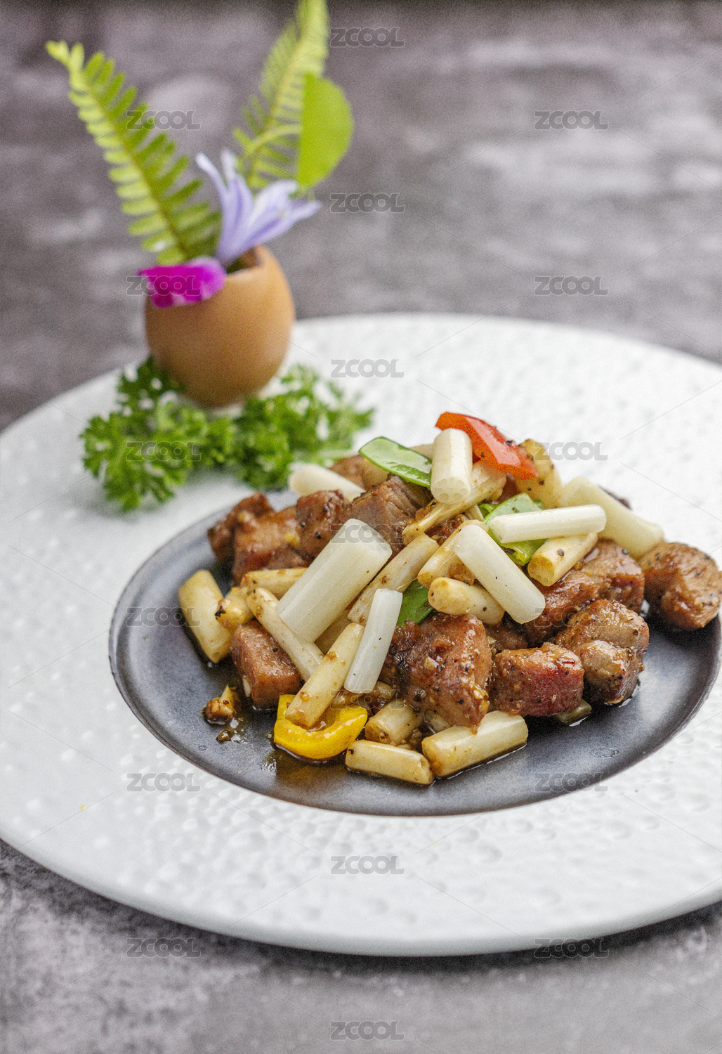 鲜甜养生的火龙果芥蓝雪花牛肉粒