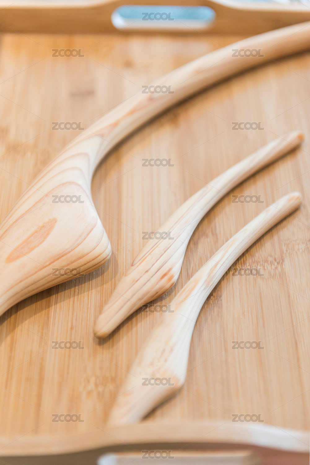 方形竹制托盘里的桧木按摩棒