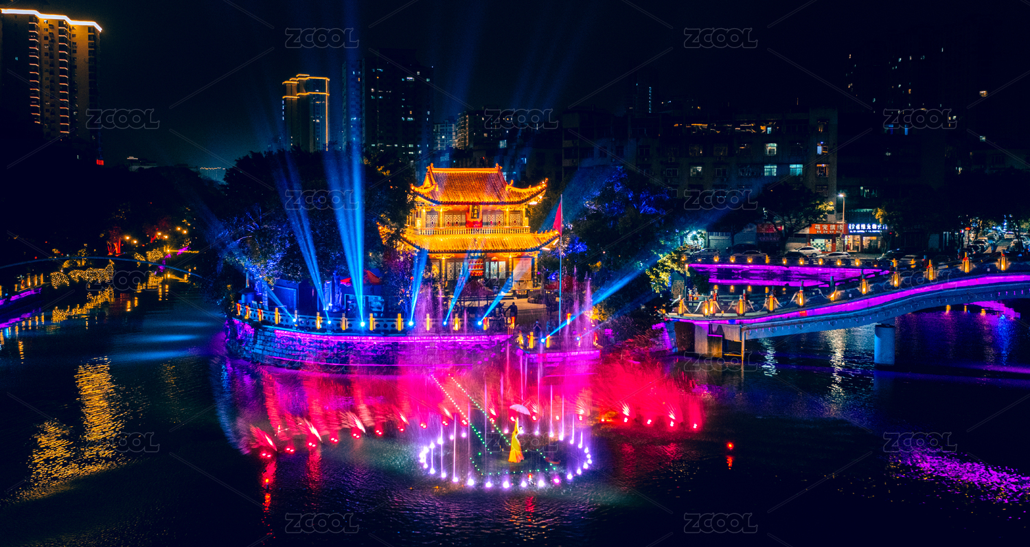 贡水河上音乐喷泉灯光秀