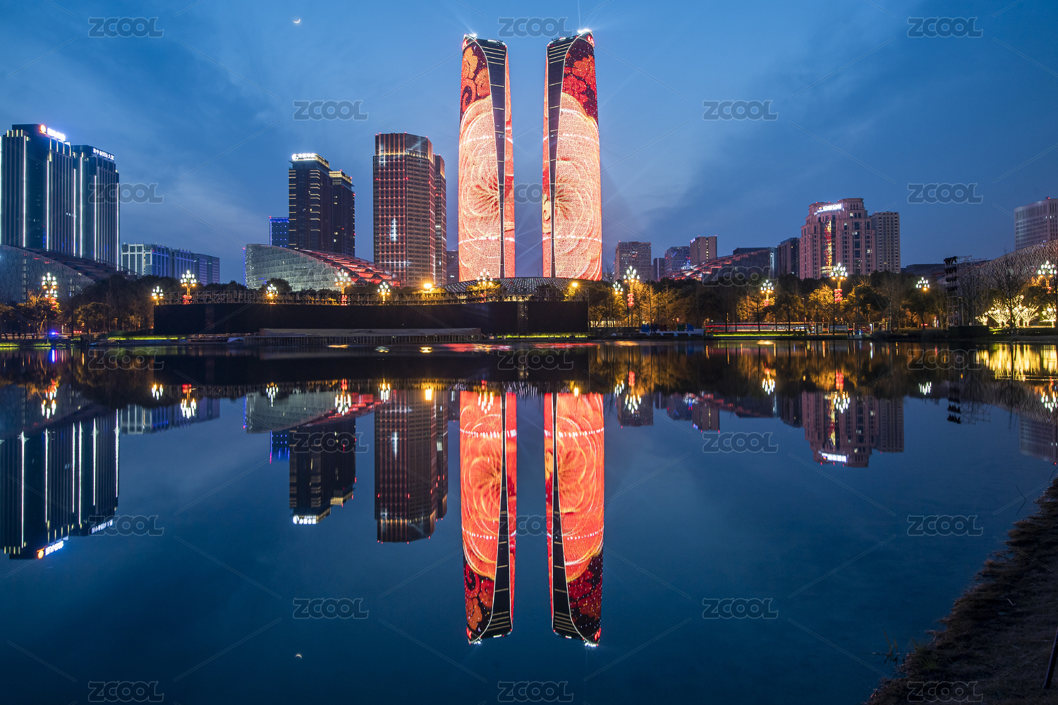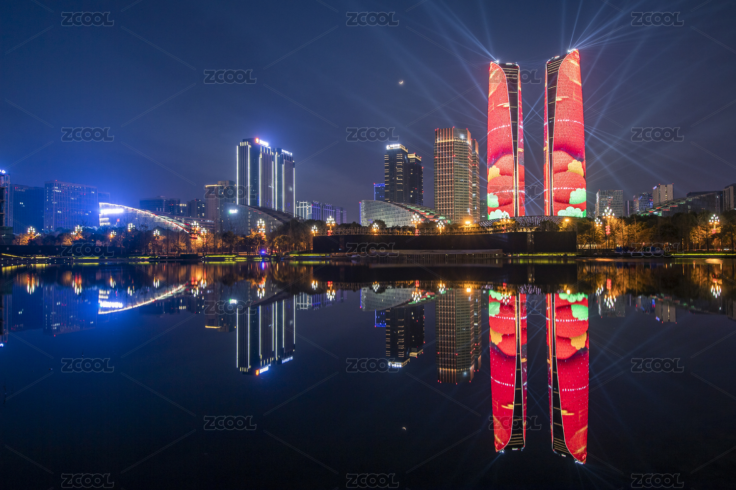 中国四川成都天府国际金融中心灯光秀