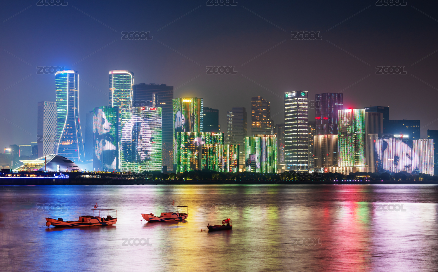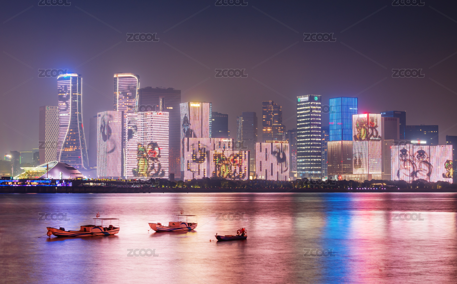 中国浙江省杭州市钱江新城国庆中秋灯光秀