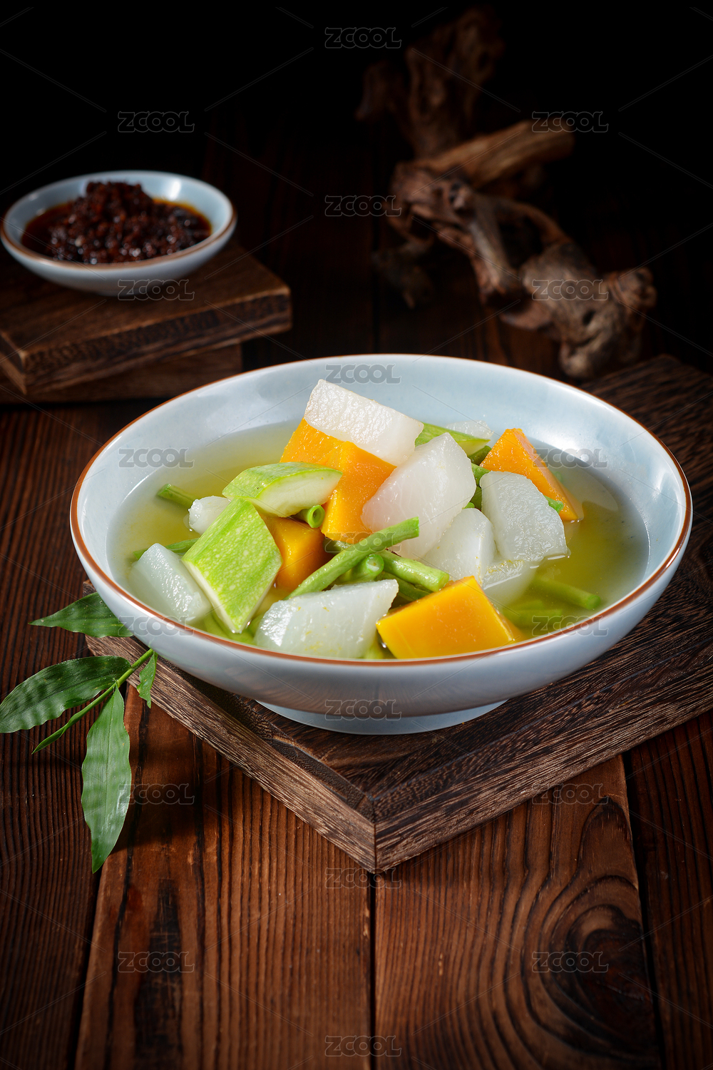放在盘子里的什锦蔬菜汤