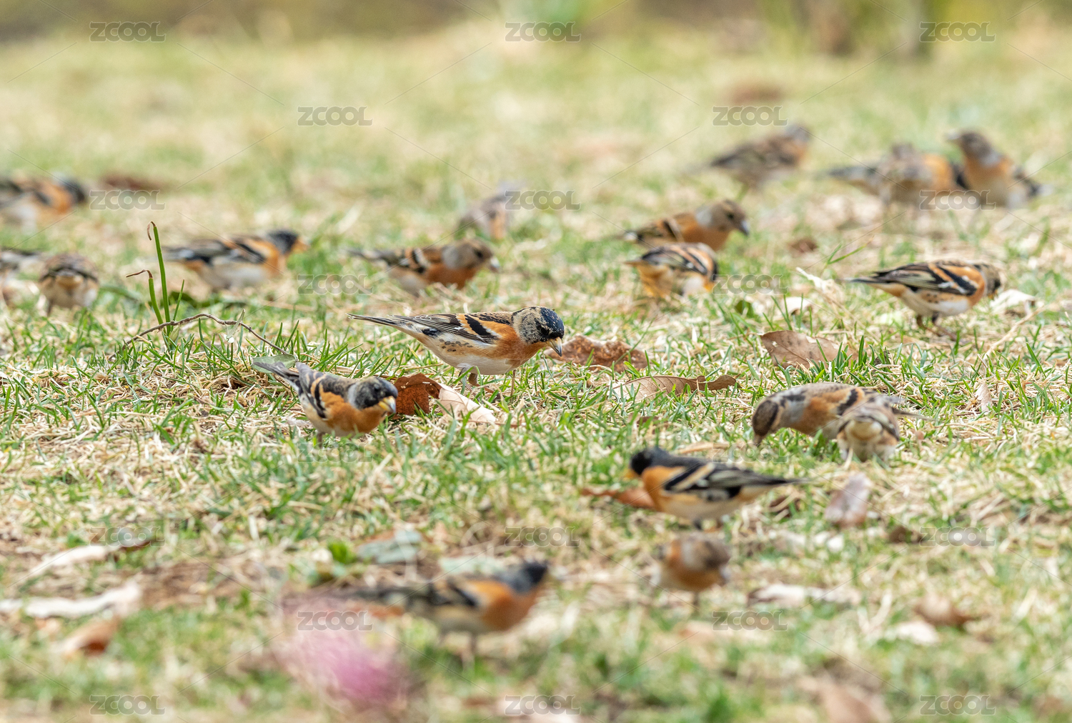 结群寻觅草子或其它植物种子为食的燕雀鸟