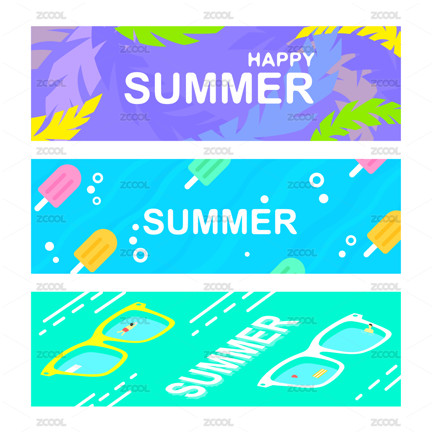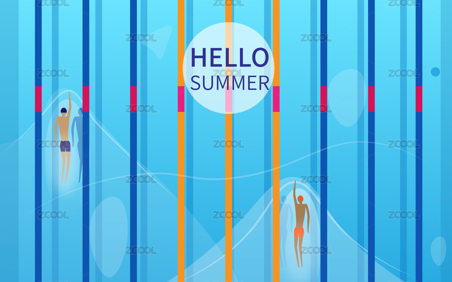 天蓝色清凉夏日游泳人物矢量海报