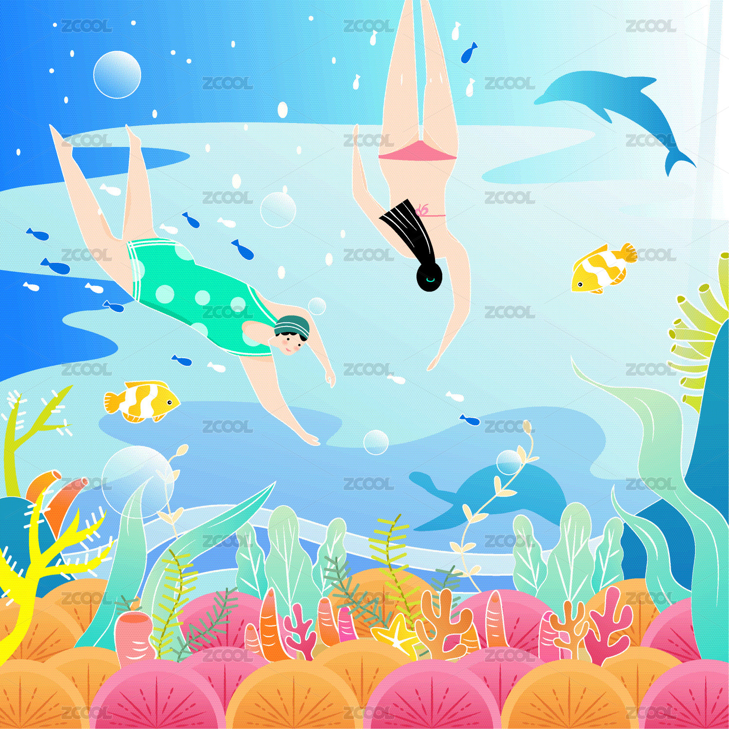 夏天一起去潜水游泳吧