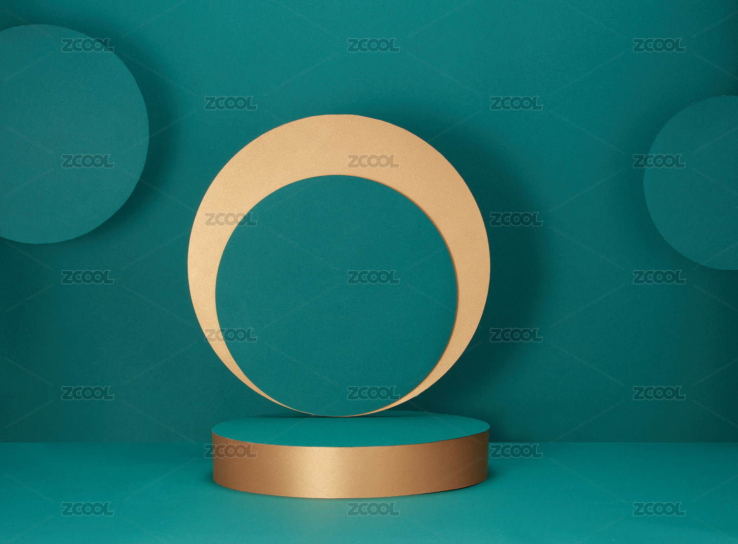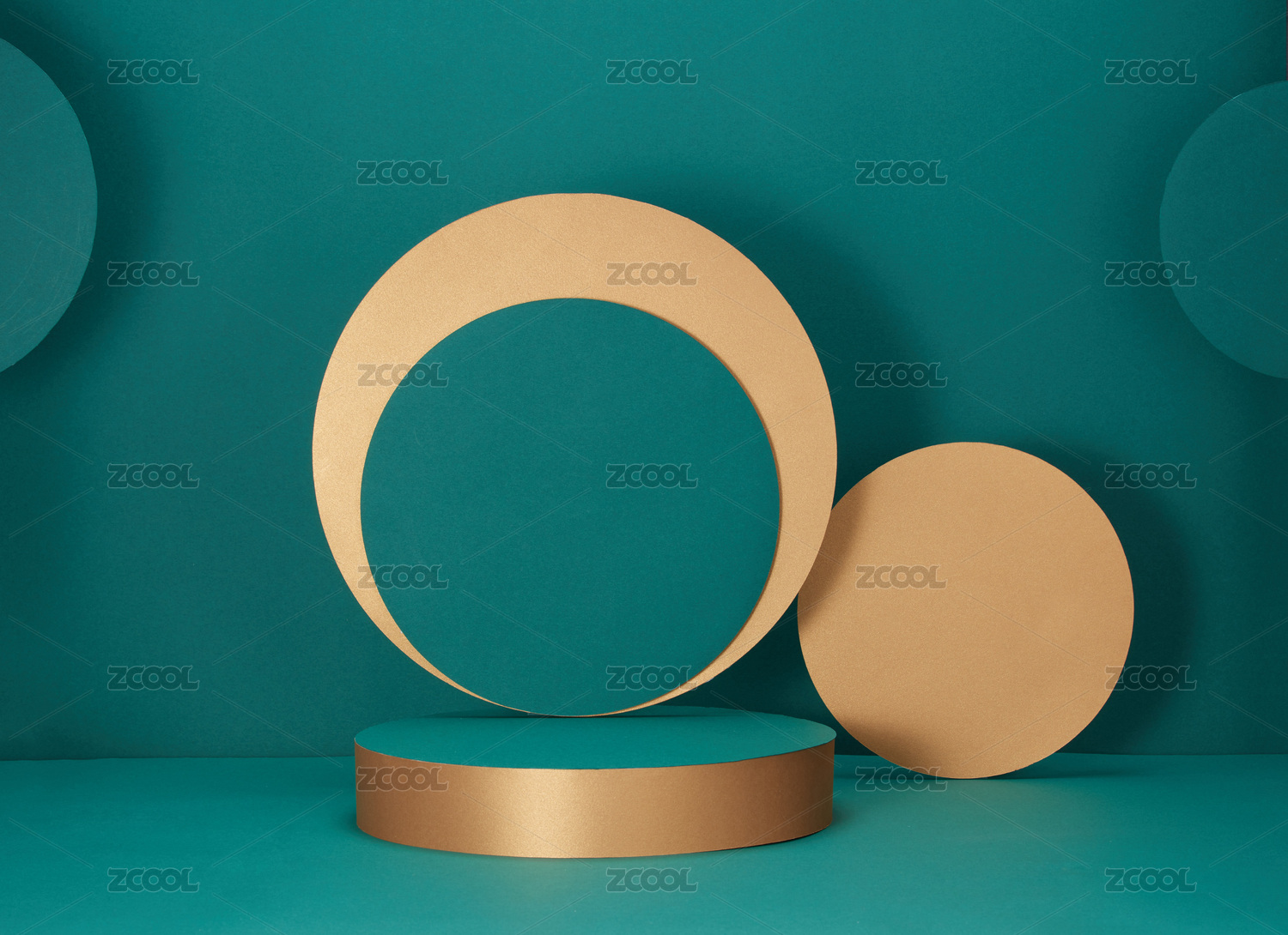 蓝绿色和金色圆盘在蓝绿色背景上