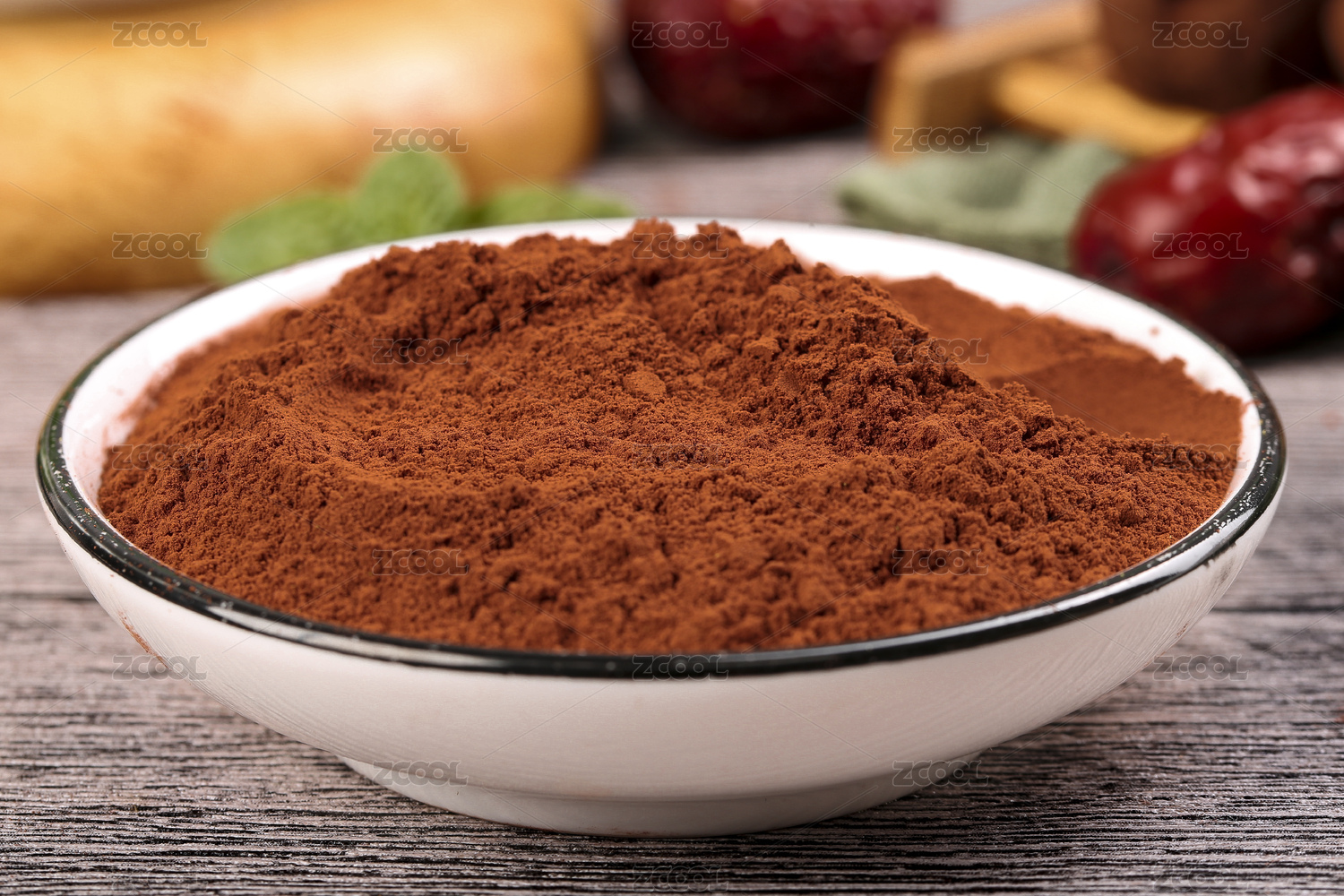 桌面上的盘子里的美味可口的可可粉