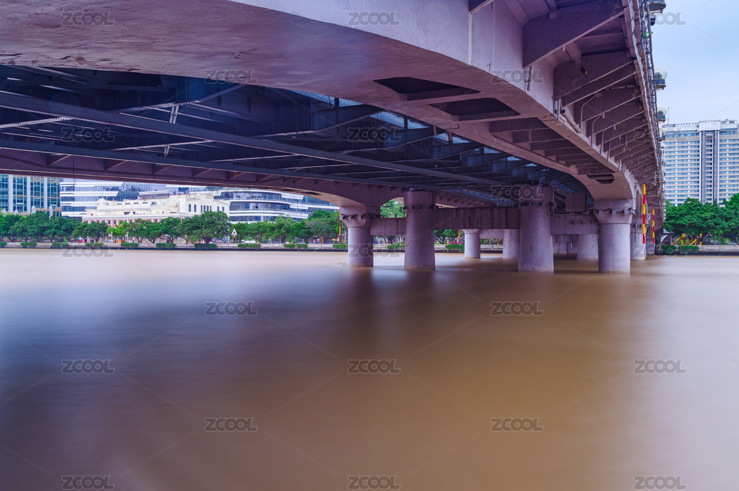 中国广州珠江海珠桥洪水与城市建筑群景观