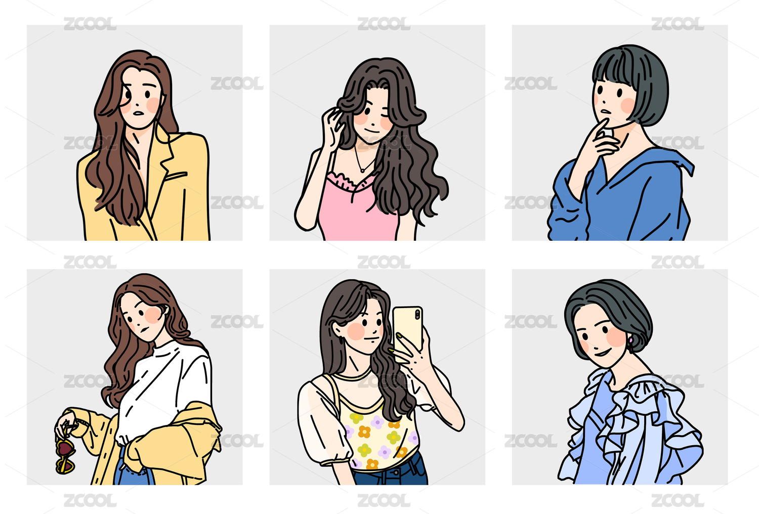 六宫格都市女性美少女人物手绘卡通头像
