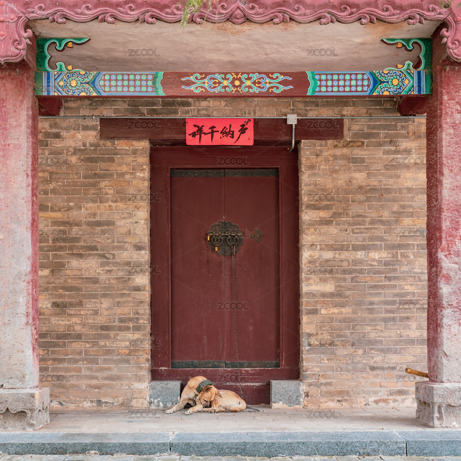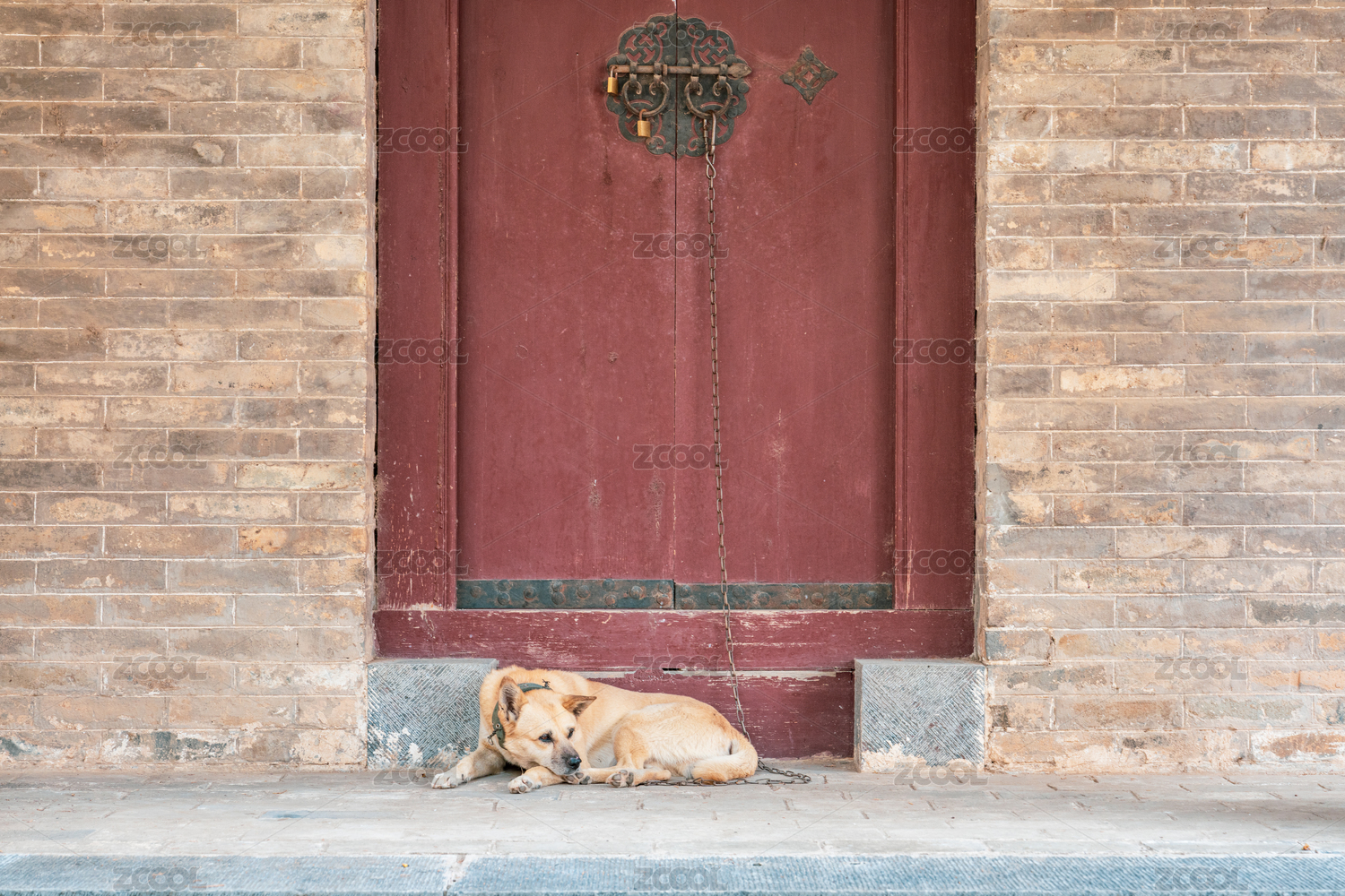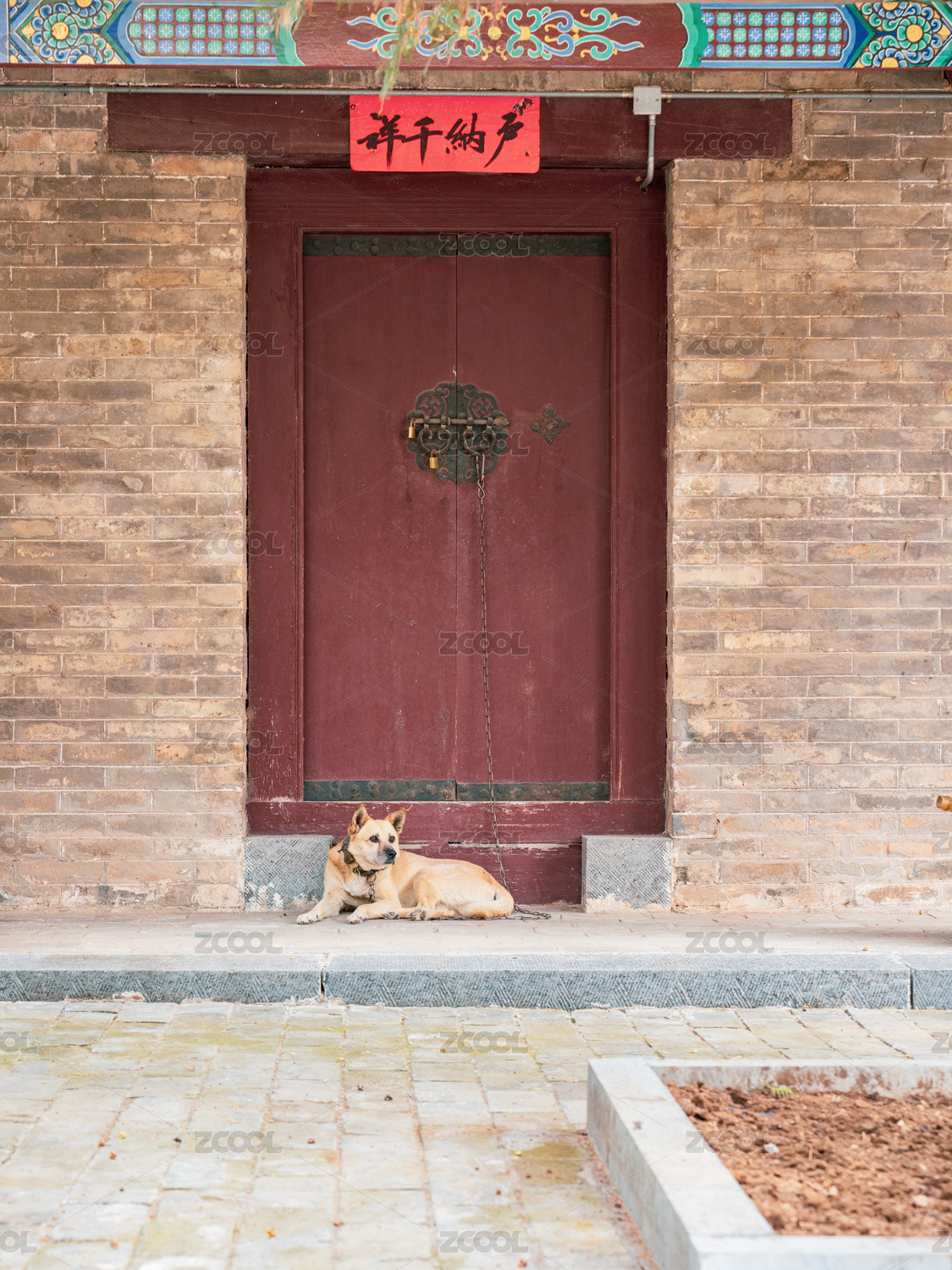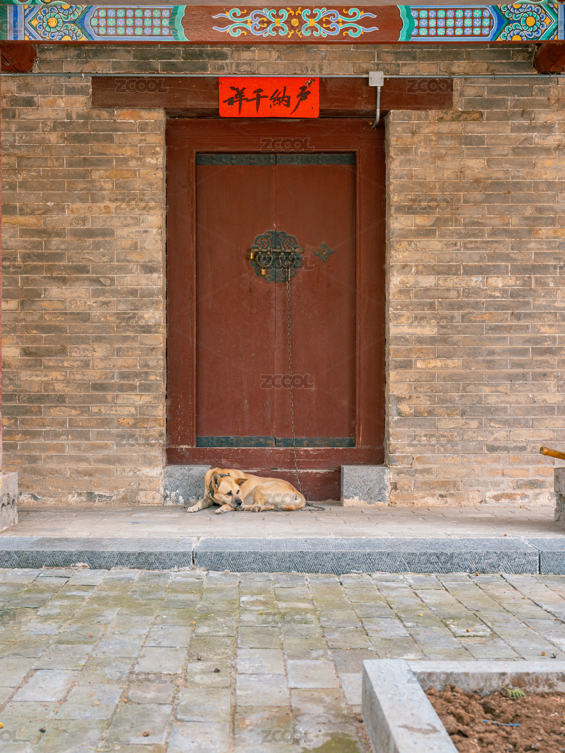 老院子门前休息的大黄狗