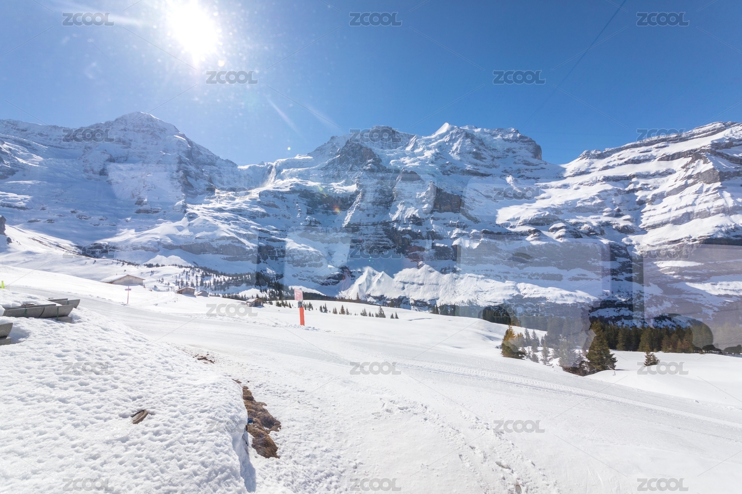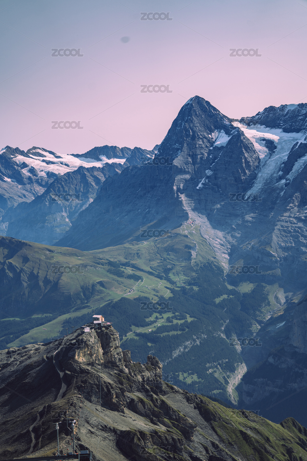 远望西欧瑞士阿尔卑斯山少女峰雪山