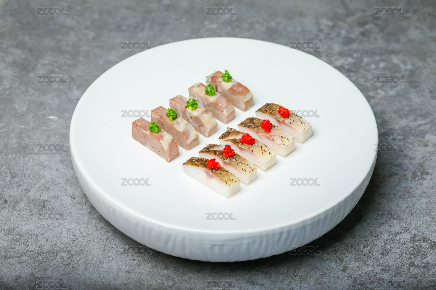 冷切鲟鱼块白色盘子
