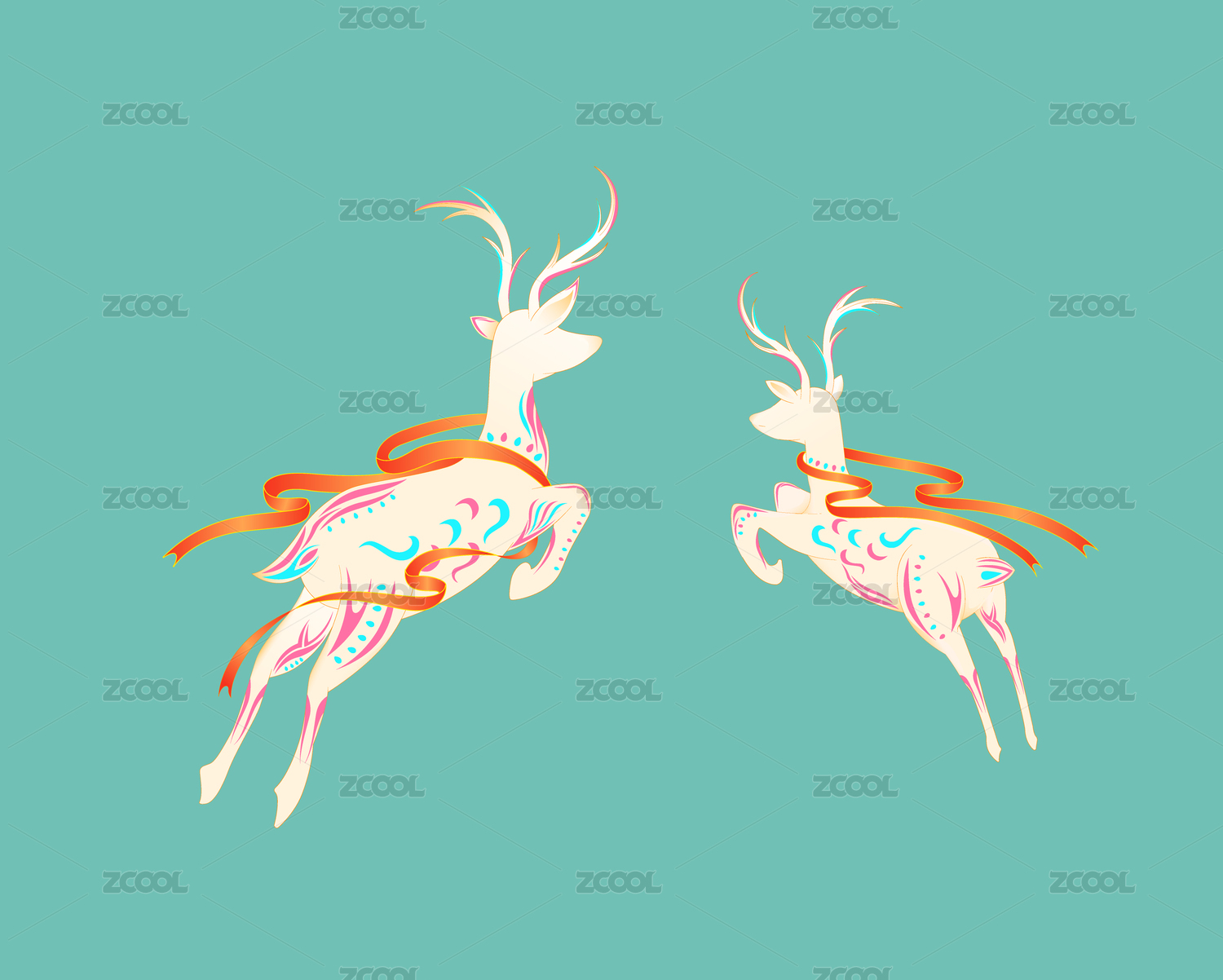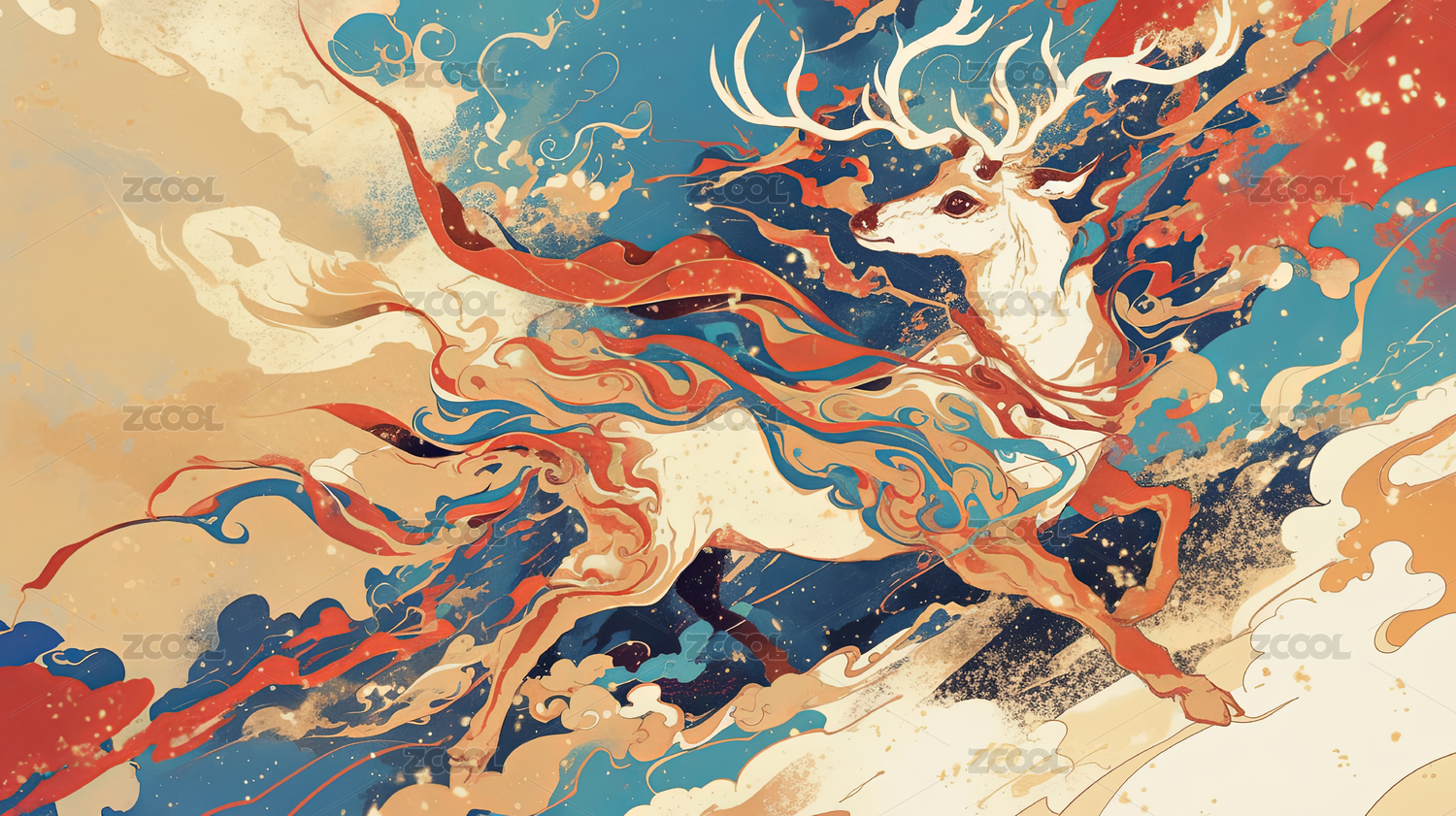 七彩鹿敦煌风格中国风