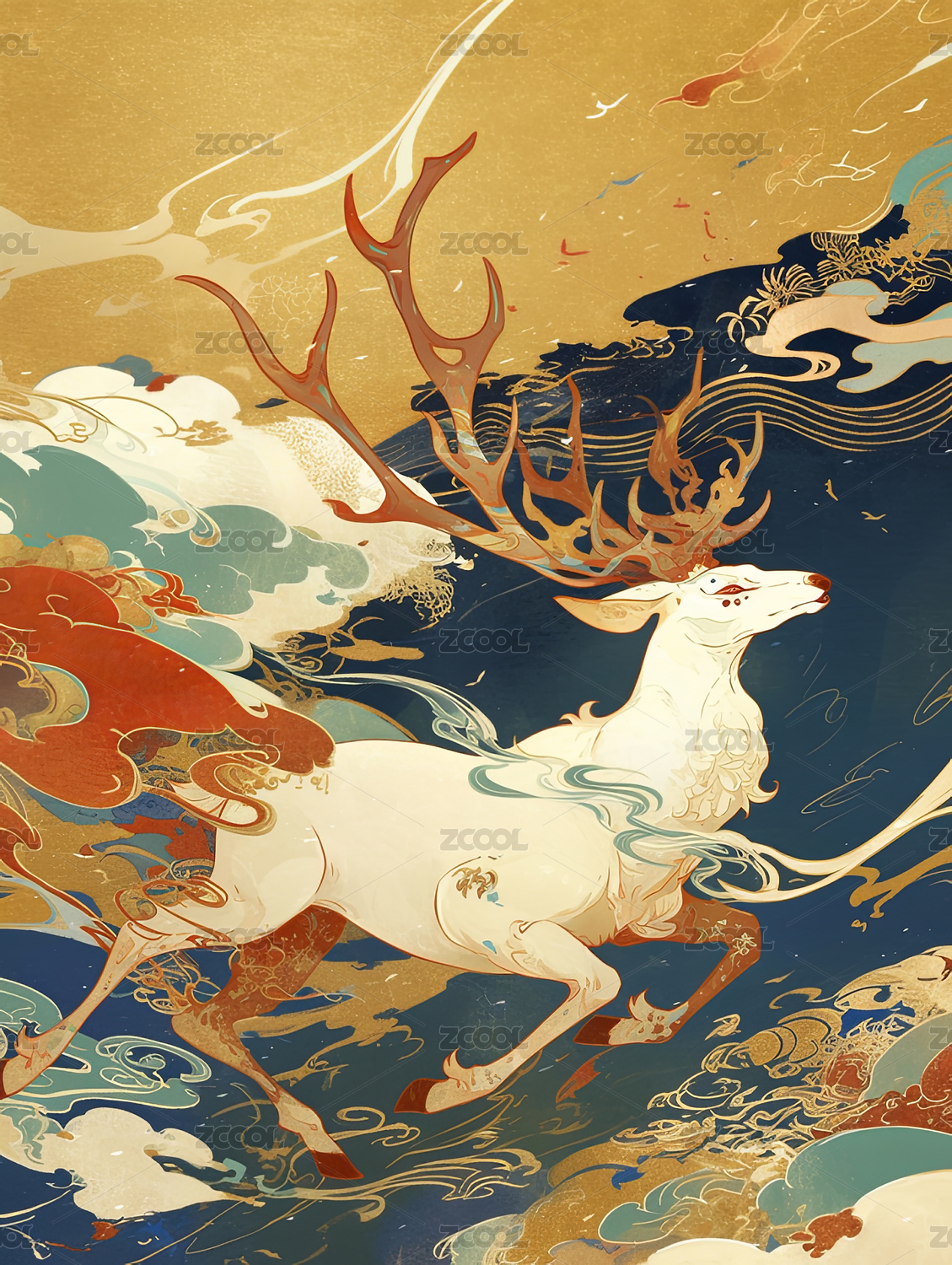 中国古典图案七彩金云的鹿