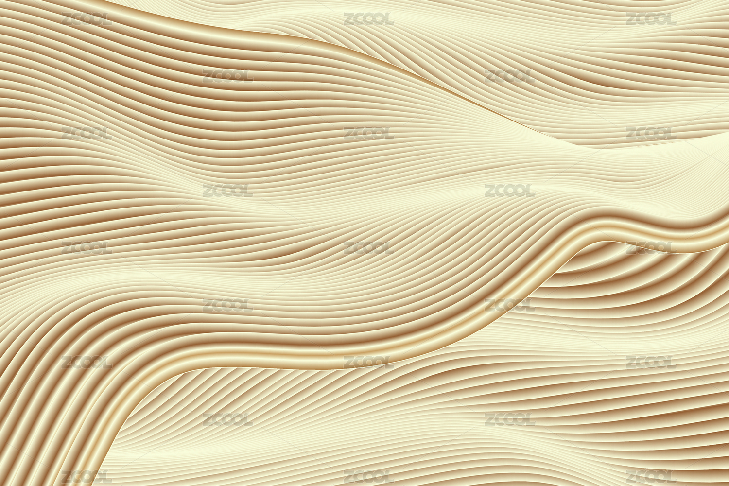 3D渲染波形流动金色抽象线条质感纹理背景