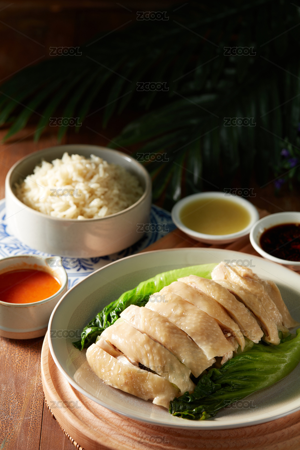 餐桌上的海南鸡饭