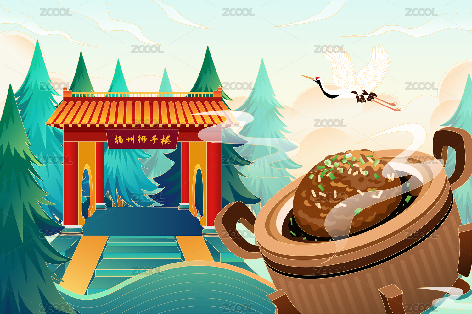 矢量新国潮风传统中华美食扬州狮子头