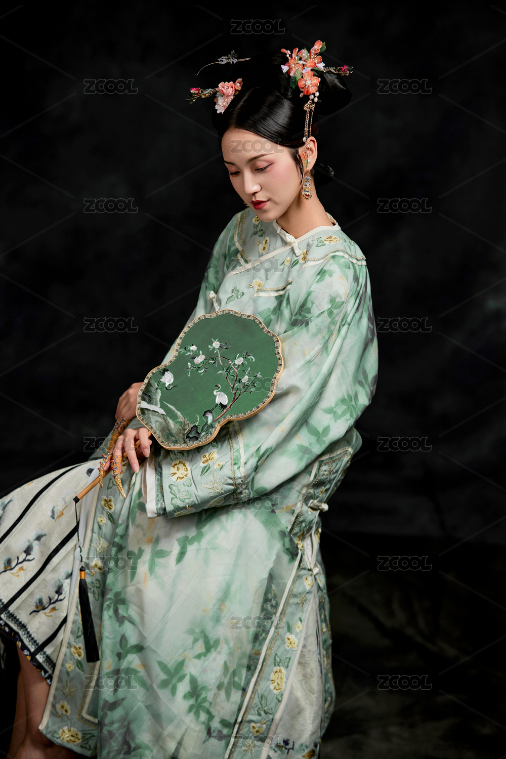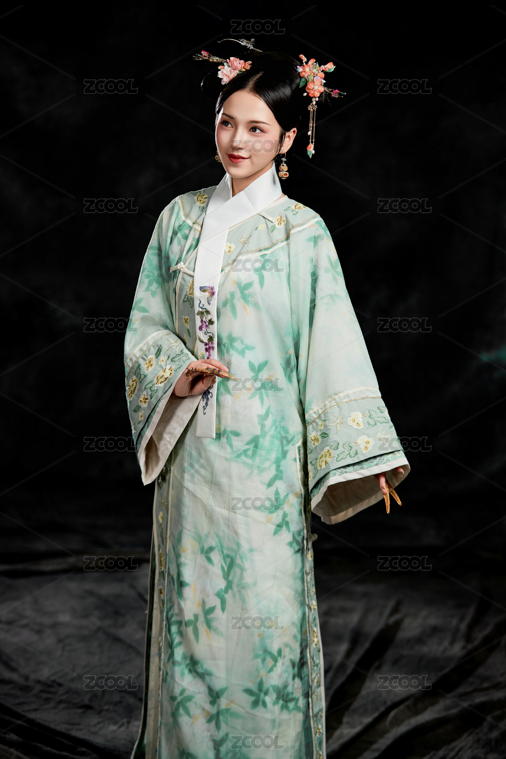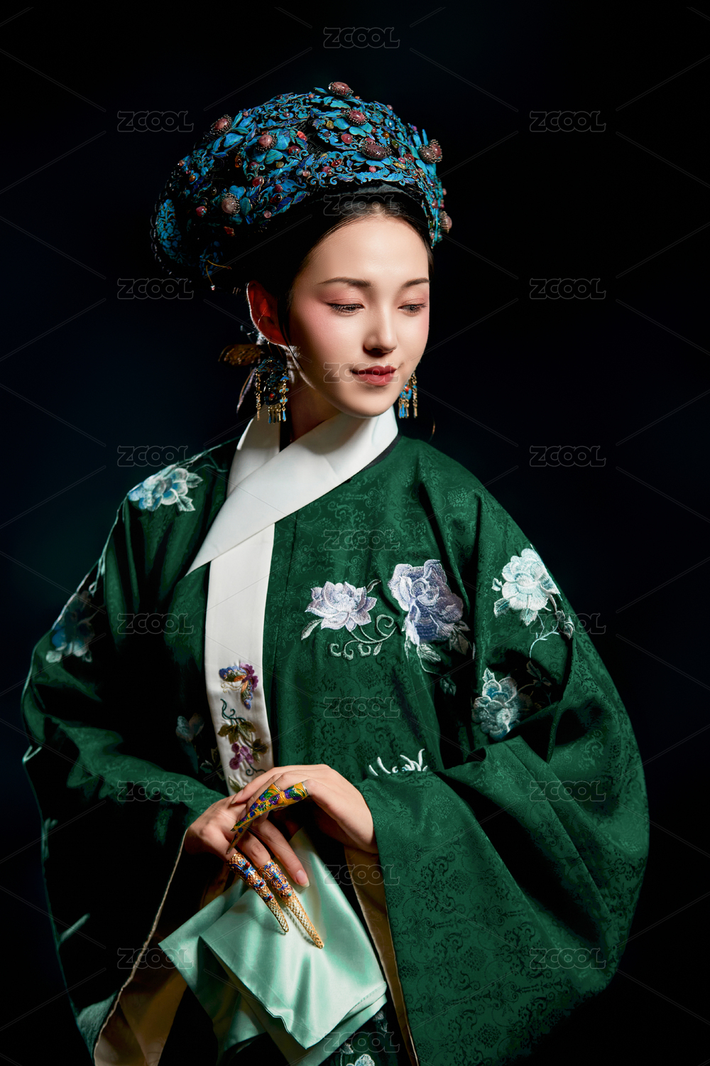 展示中国清朝宫廷服饰的亚洲女性