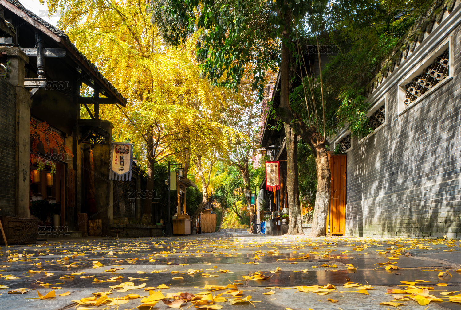 四川成都宽窄巷子步行街秋季风光