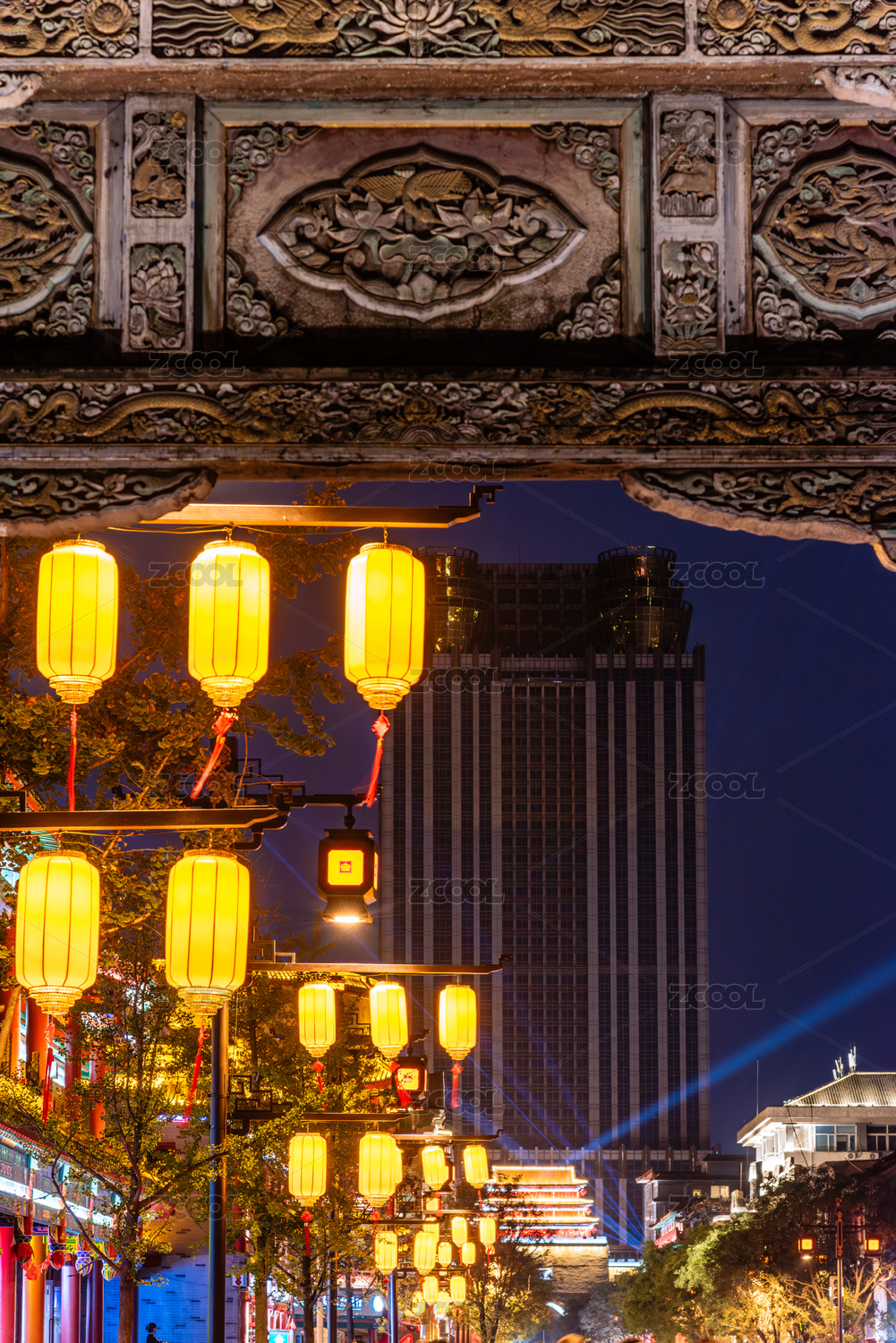 中国辽宁沈阳故宫满清一条街古建筑夜景