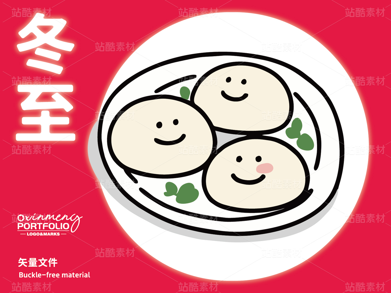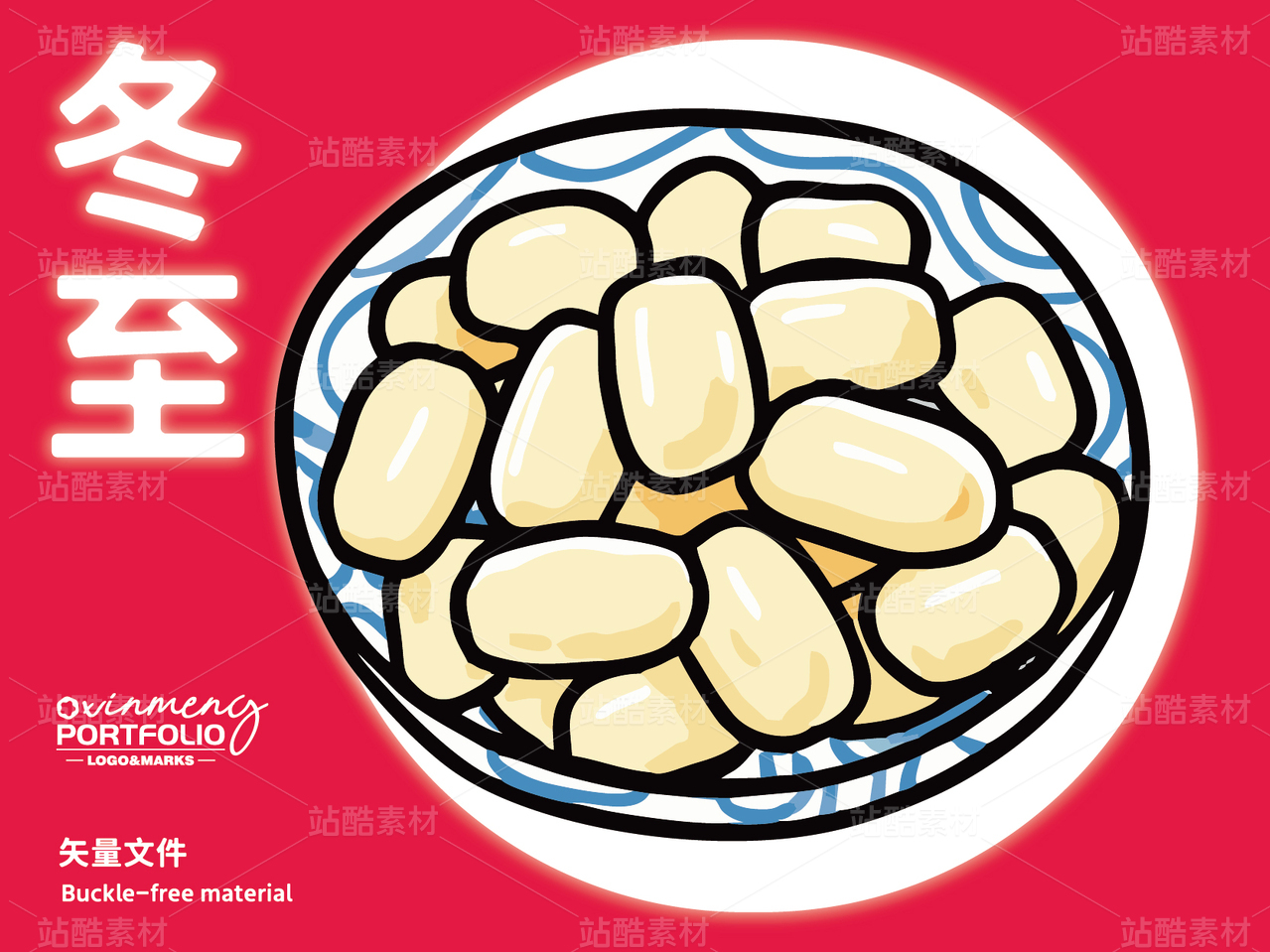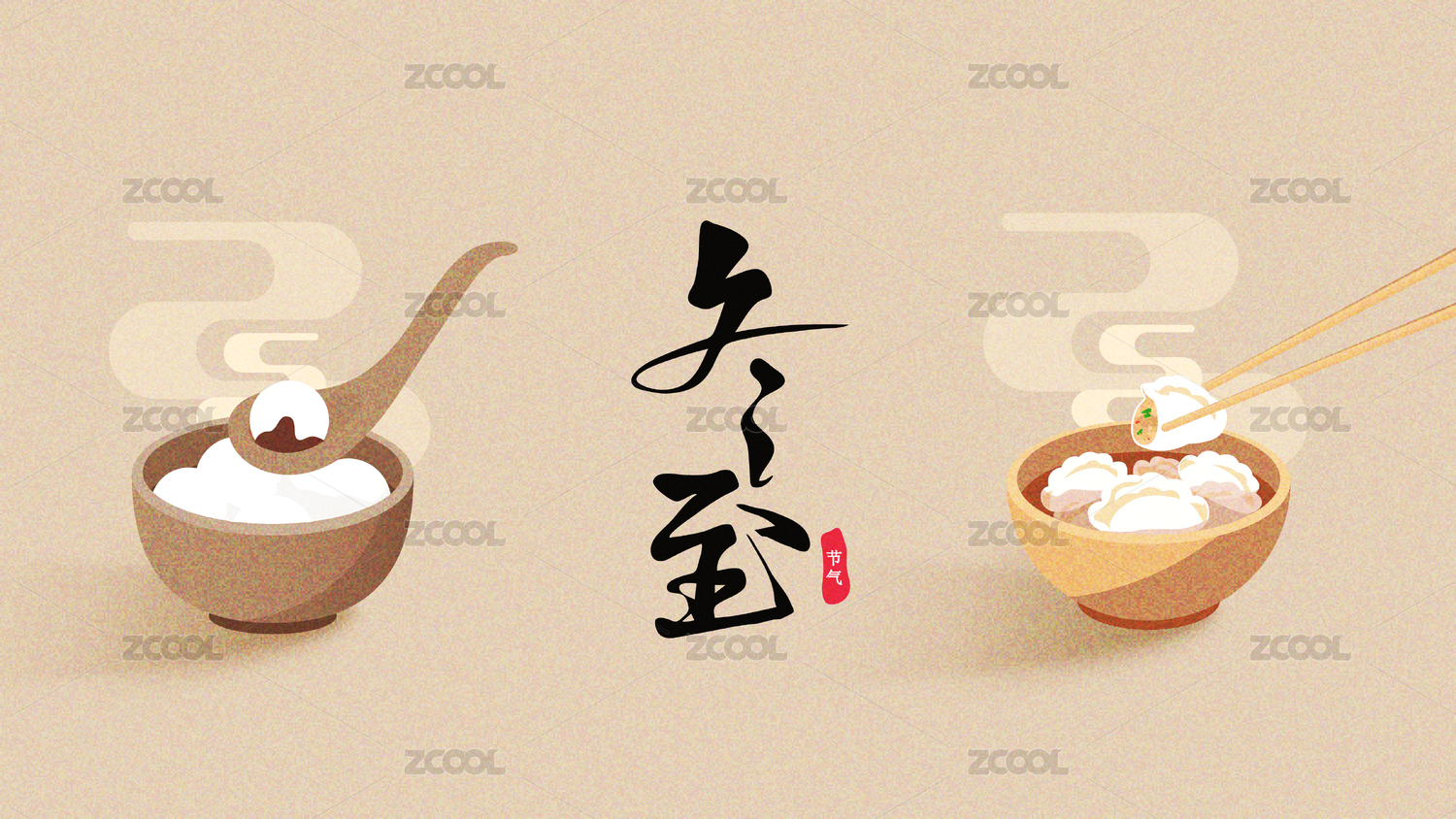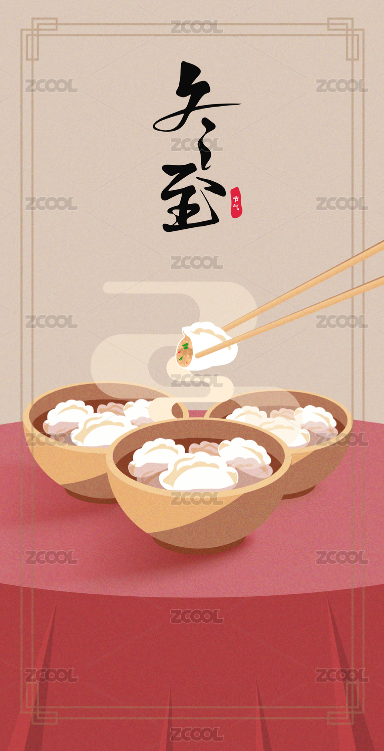 二十四节气冬至一盘水饺和筷子矢量海报素材