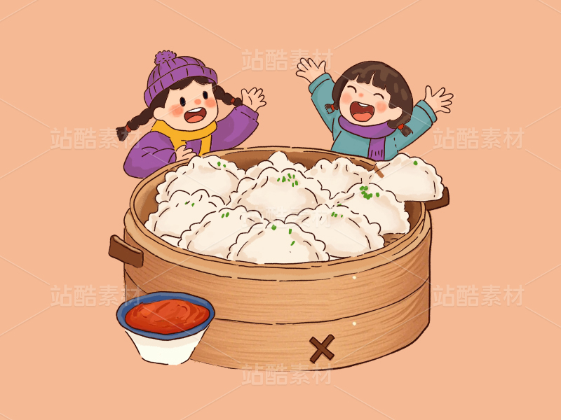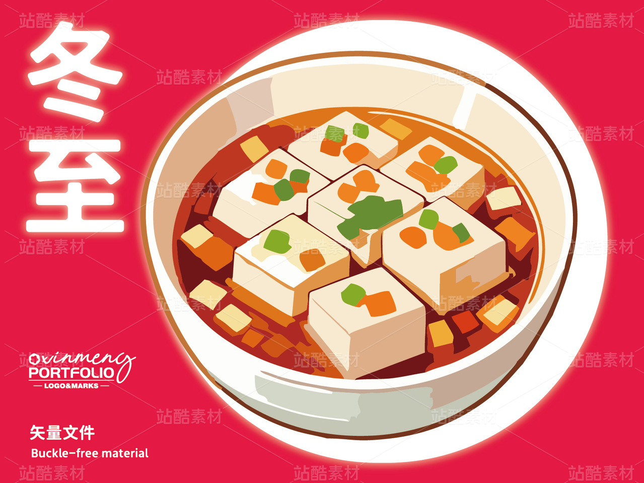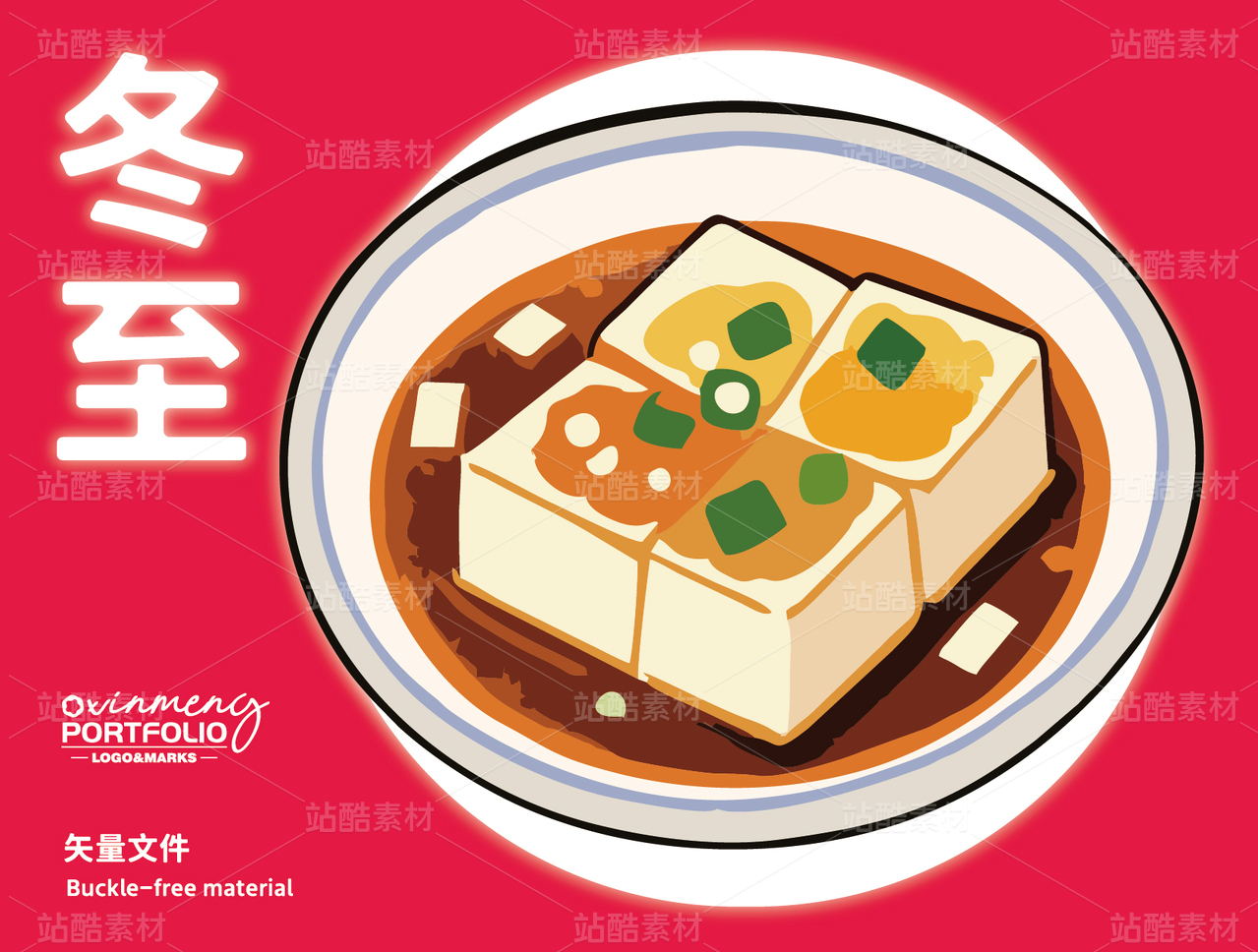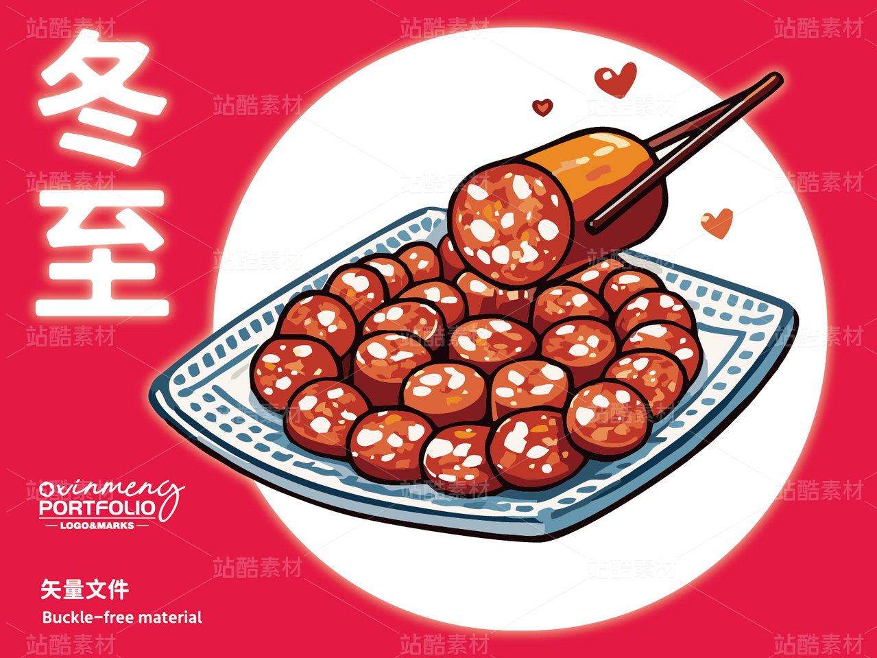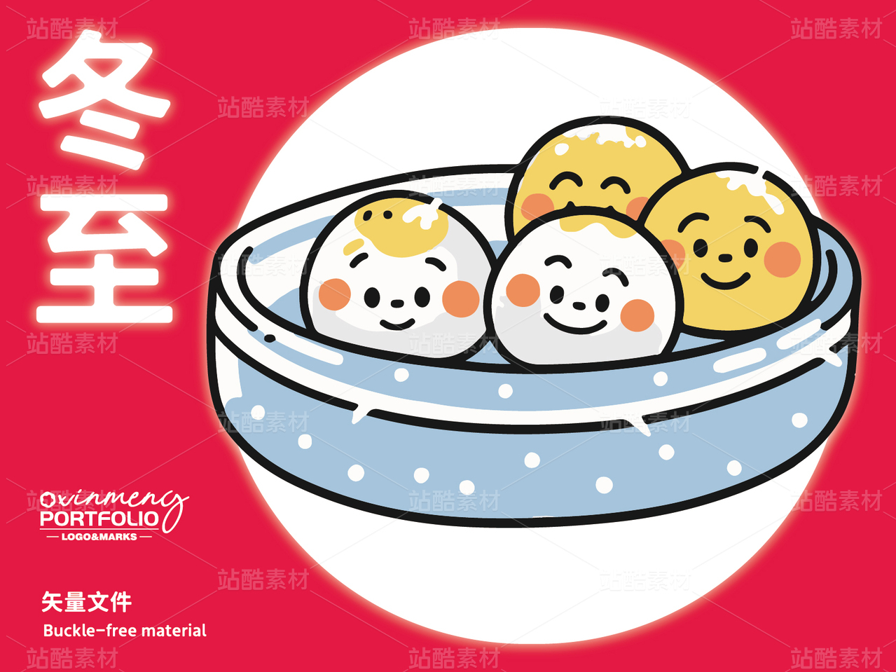 二十四节气冬至一盘水饺和筷子矢量海报素材