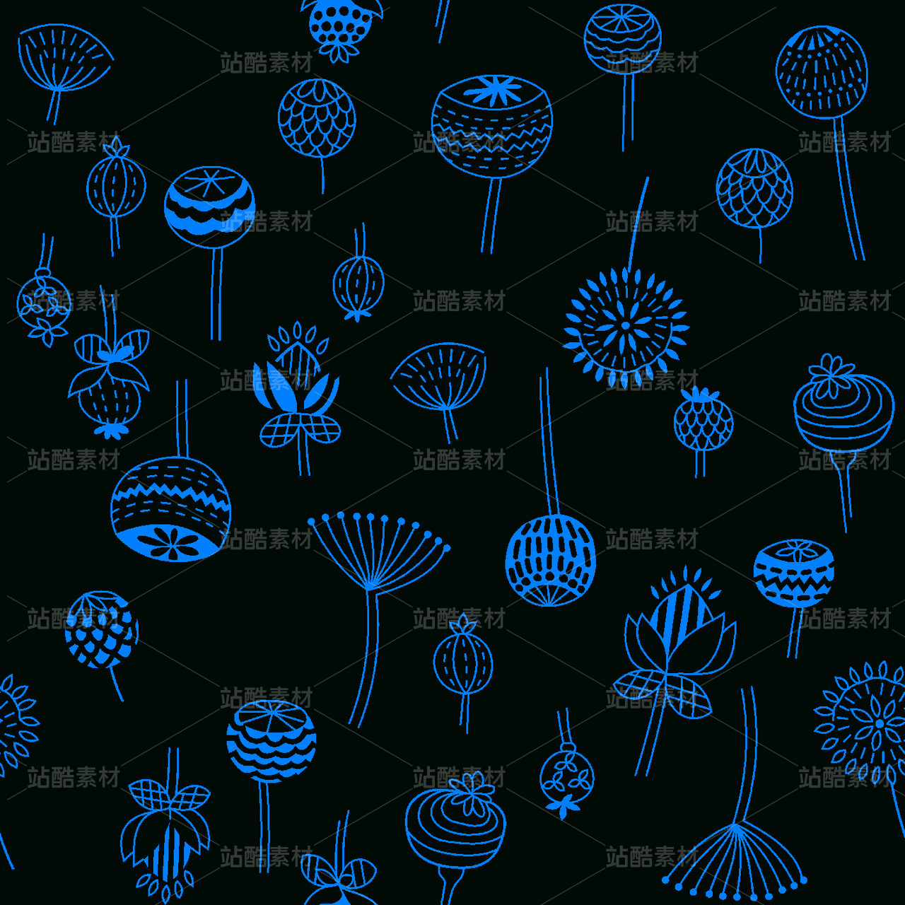 中国蓝卡通印花背景