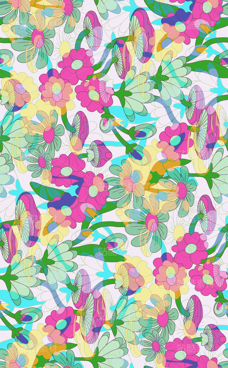 数码卡通手绘花卉印花图案抽象海报背景